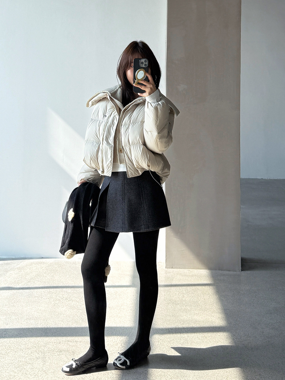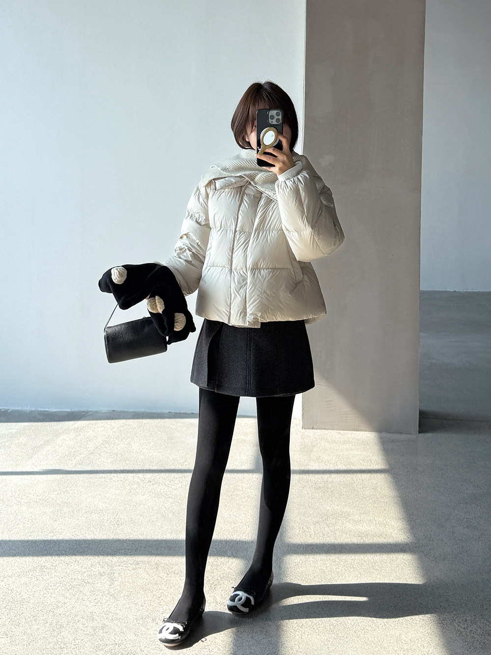 【王琪芝】90白鸭绒可拆卸针织双层领羽绒服女保暖短款外套WQ118
