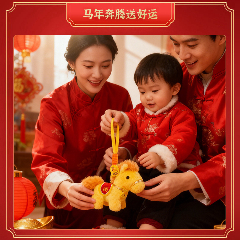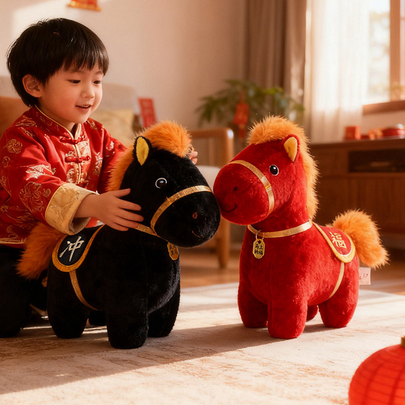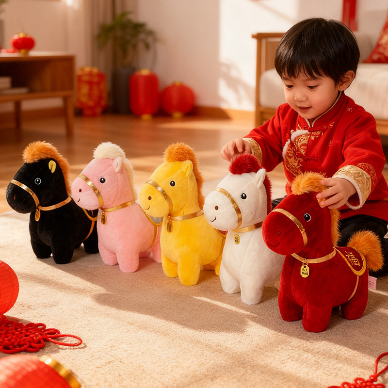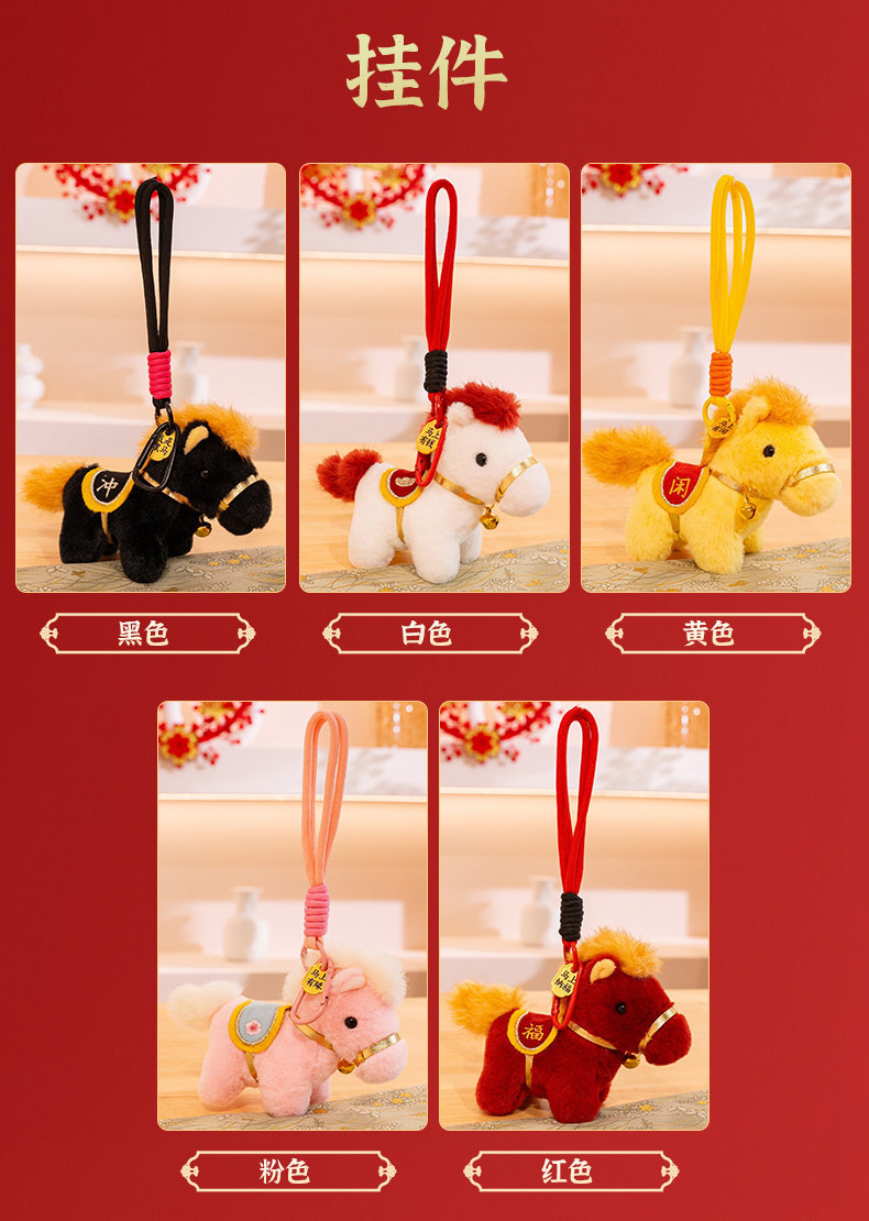 生肖马年吉祥物毛绒玩具可爱仿真马公仔挂件儿童陪伴礼物安抚摆件