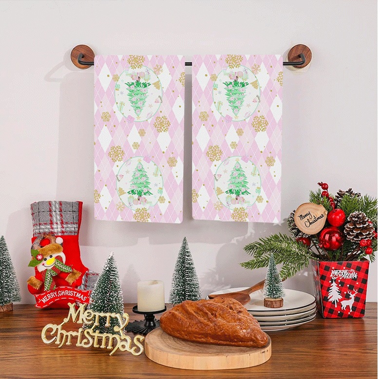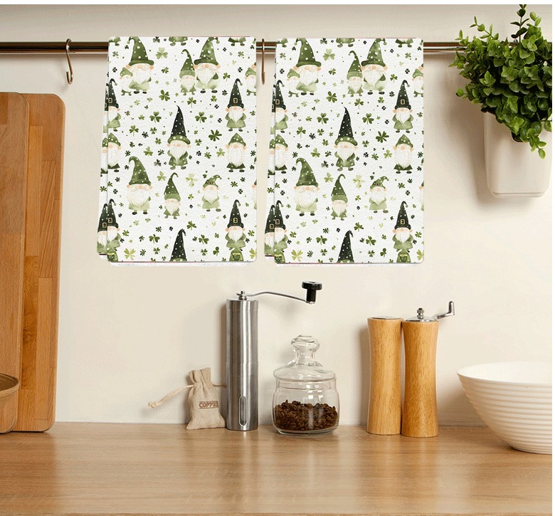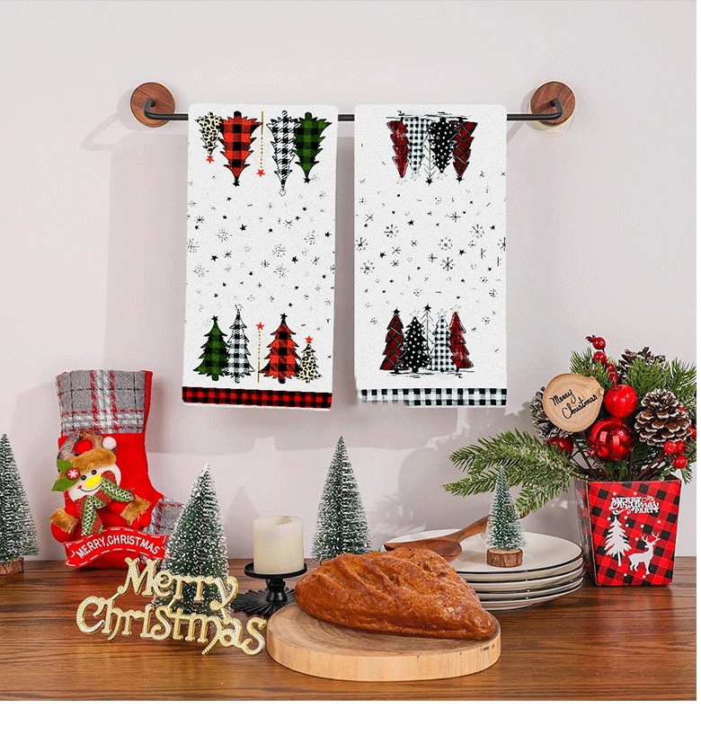 爆款厨房毛巾加厚圣诞节印花茶巾家用餐桌装饰情人节复活节小毛巾