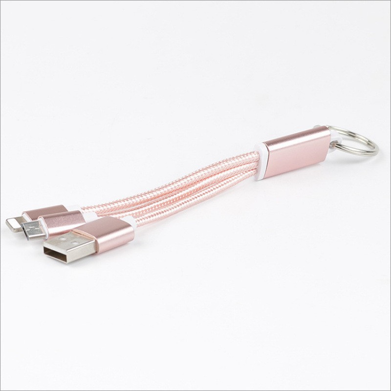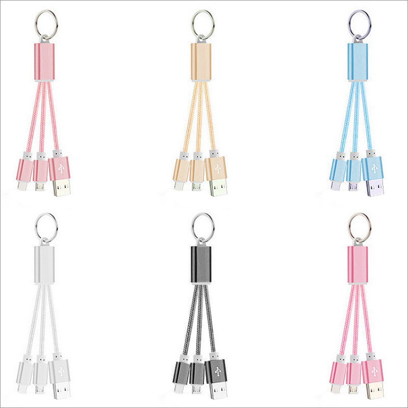 推荐理由:跨境定制13cm三合一充电线匙扣一拖三充电线适用华为苹果数据线