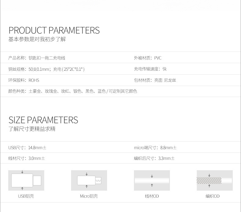 钥匙扣充电线 登山扣充电线 一拖三充电线 多头充电线