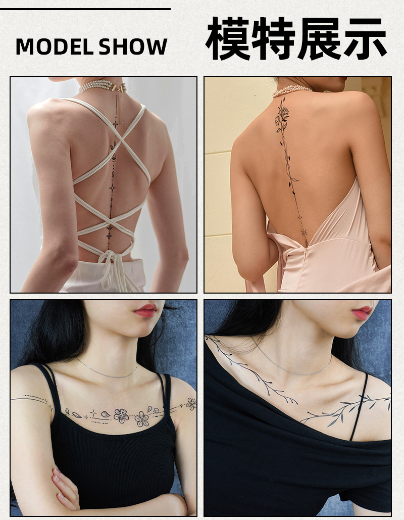 瑞卡龙素色花纹身贴新款防水纹身贴逼真高级感工厂批发暗黑纹身贴