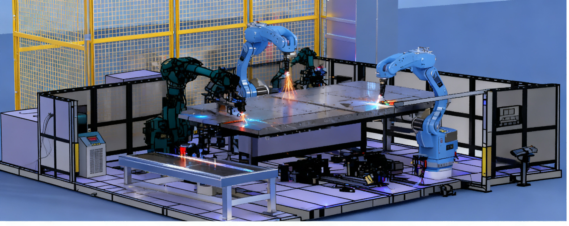 焊接工作站是一套集成化、系统化的焊接作业解决方案,核心以 1 台或多台焊接机器人(或人机协同)为作业主体,搭配变位机、输送机、工装夹具、焊接电源、控制系统、安全防护装置等周边设备,形成闭环作业单元,可独立完成从工件上料、定位、焊接、检测到下料的全流程(或半流程)焊接任务,是现代化工业生产中实现焊接自动化、高效化、标准化的核心设备组合。