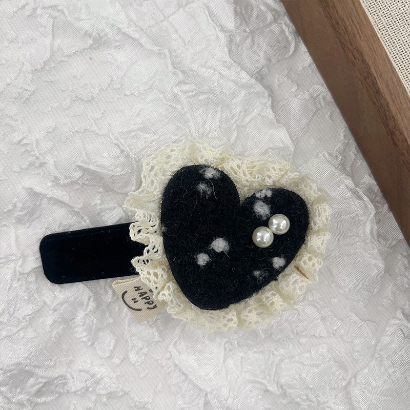 新款蕾丝爱心珍珠高级感儿童发夹蕾丝可爱爱心掰掰夹发夹发饰精致