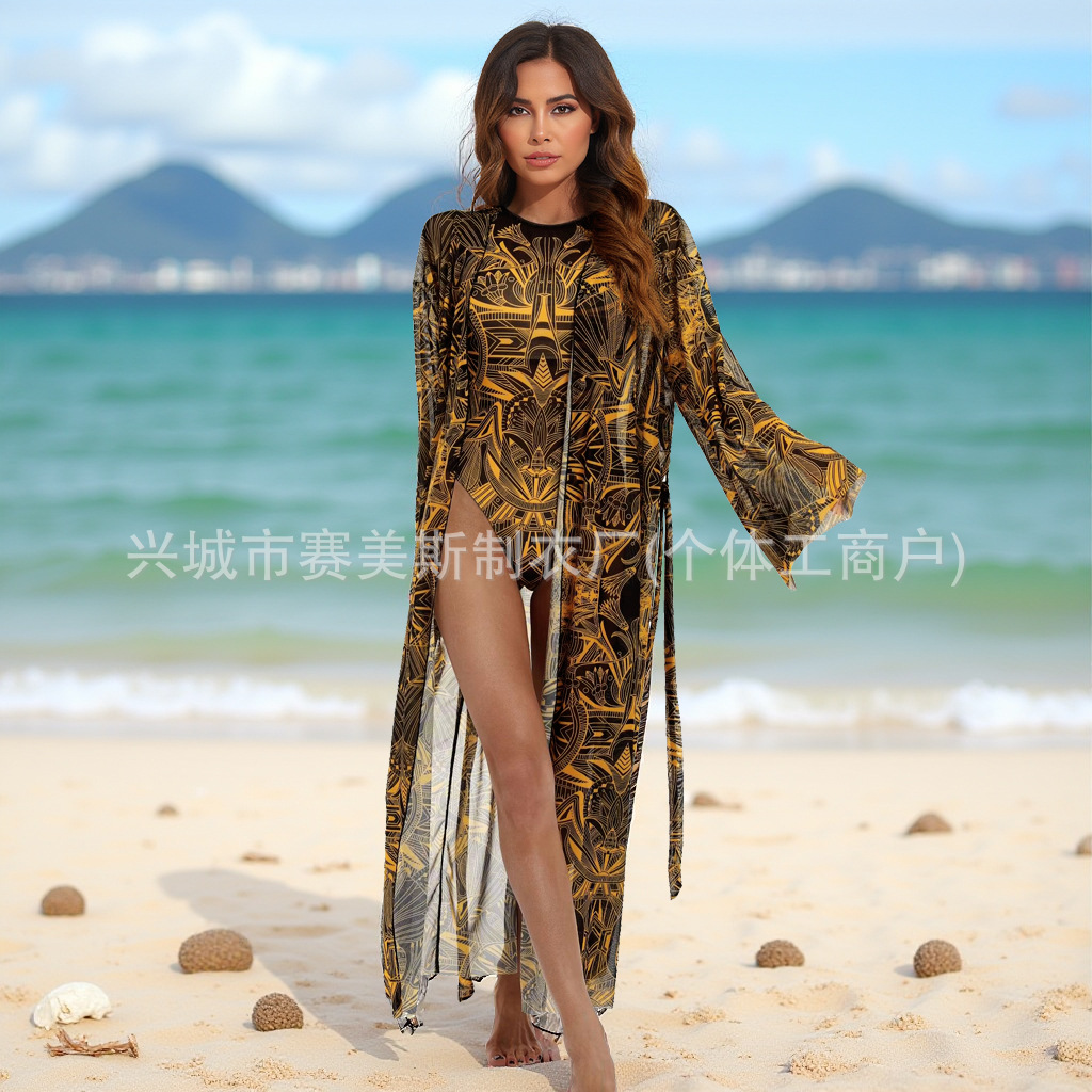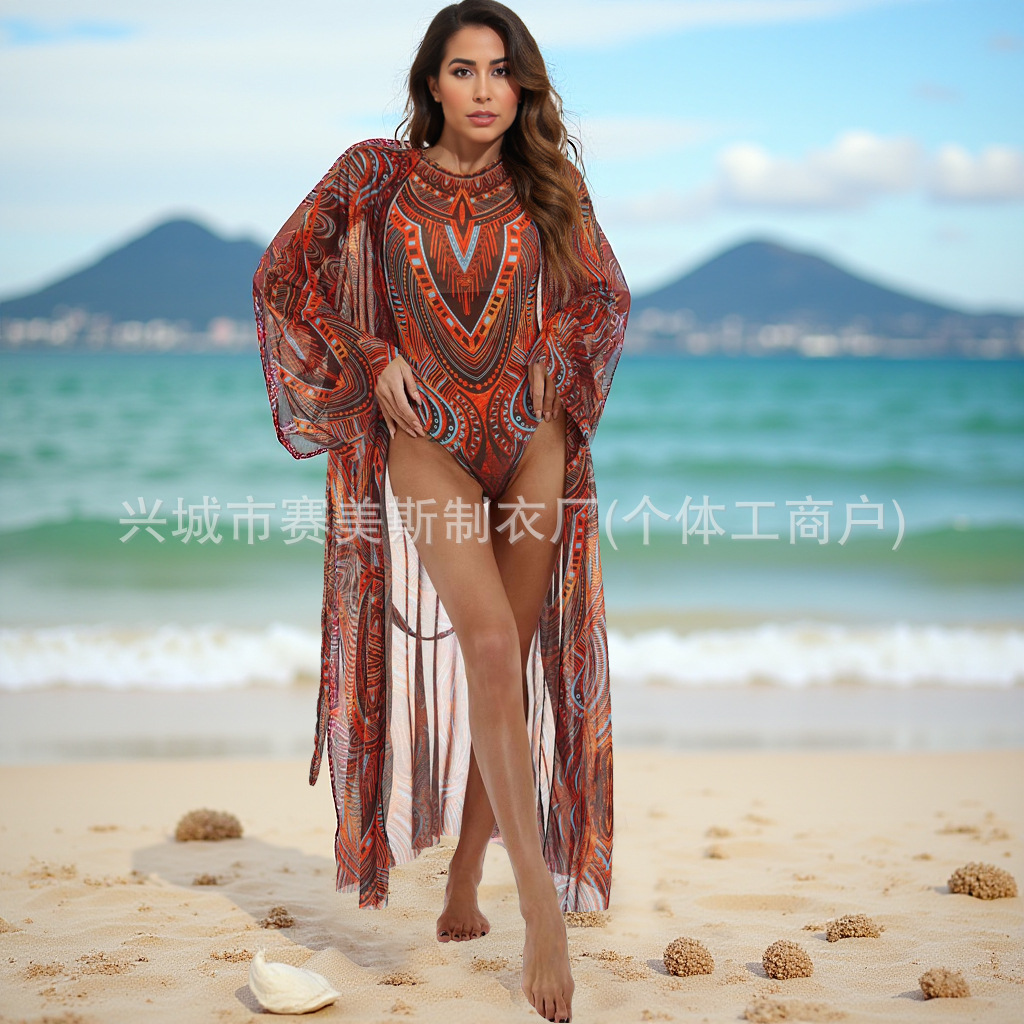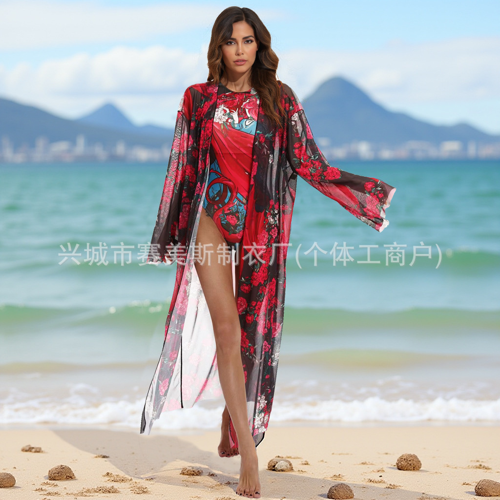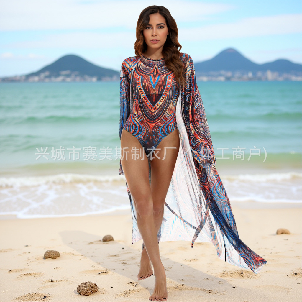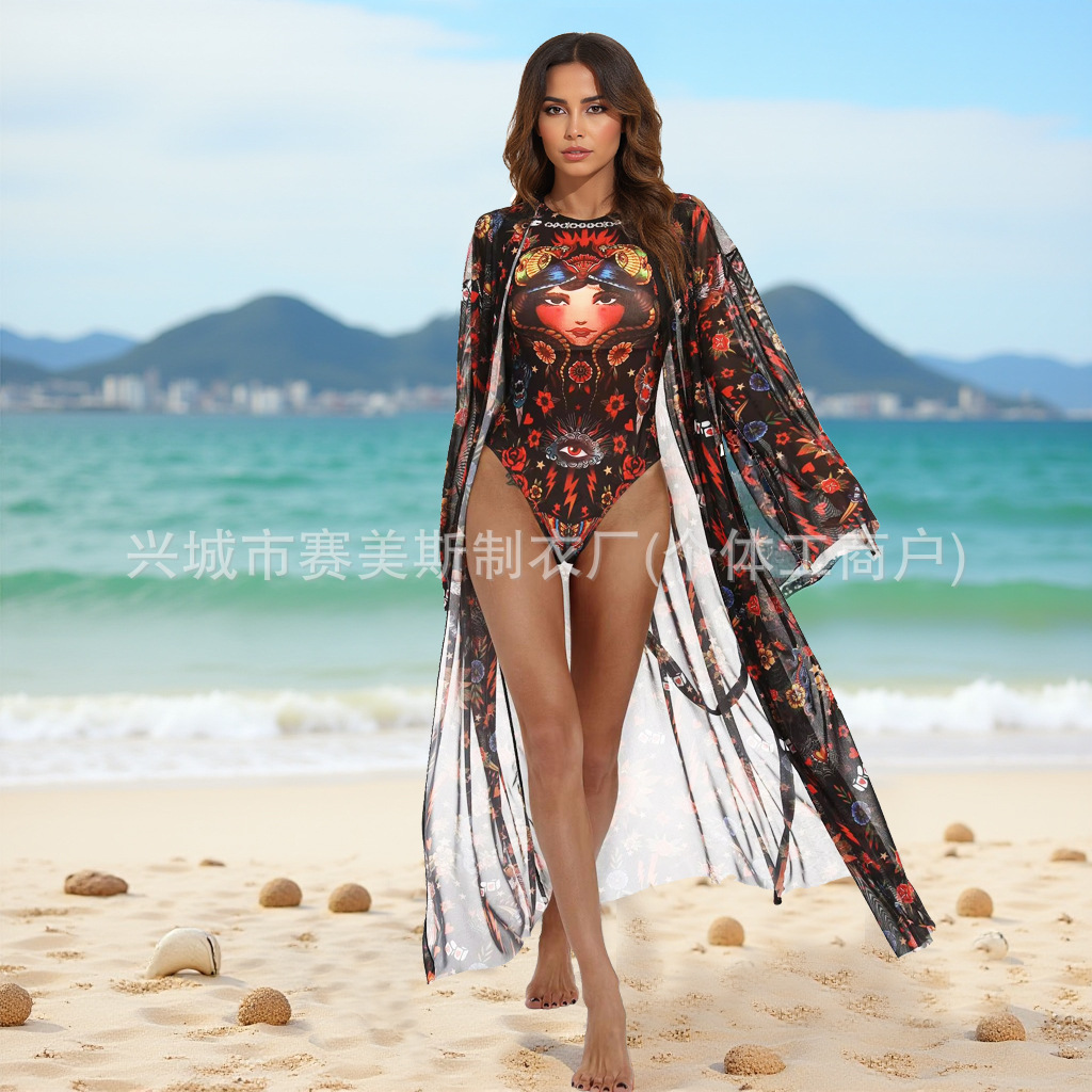упальник网纱防晒长袖罩衫游泳衣俄罗斯亚马逊连体泳衣女