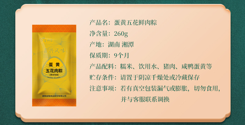 嘉兴风味湘莲五花大肉粽260g端午节粽子鲜肉香粽酒店家庭早餐