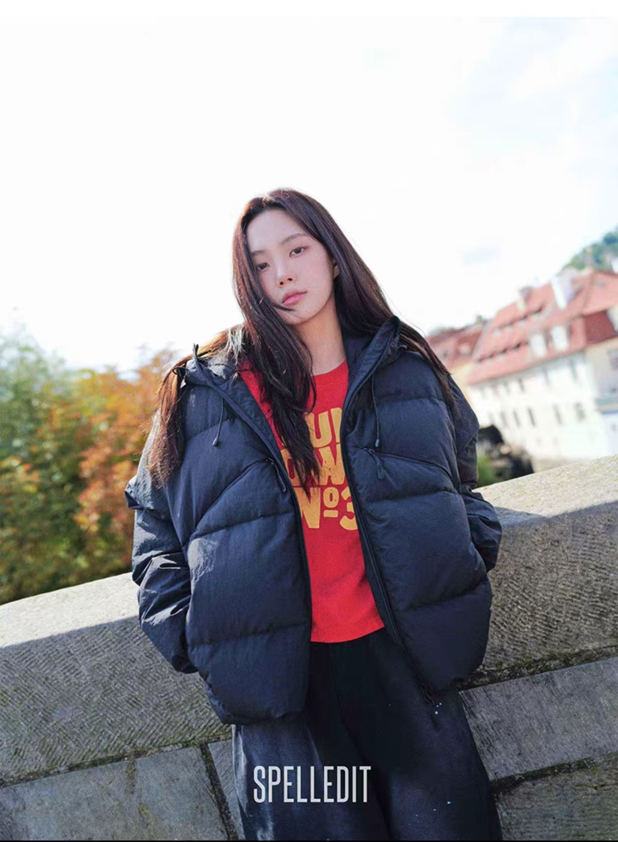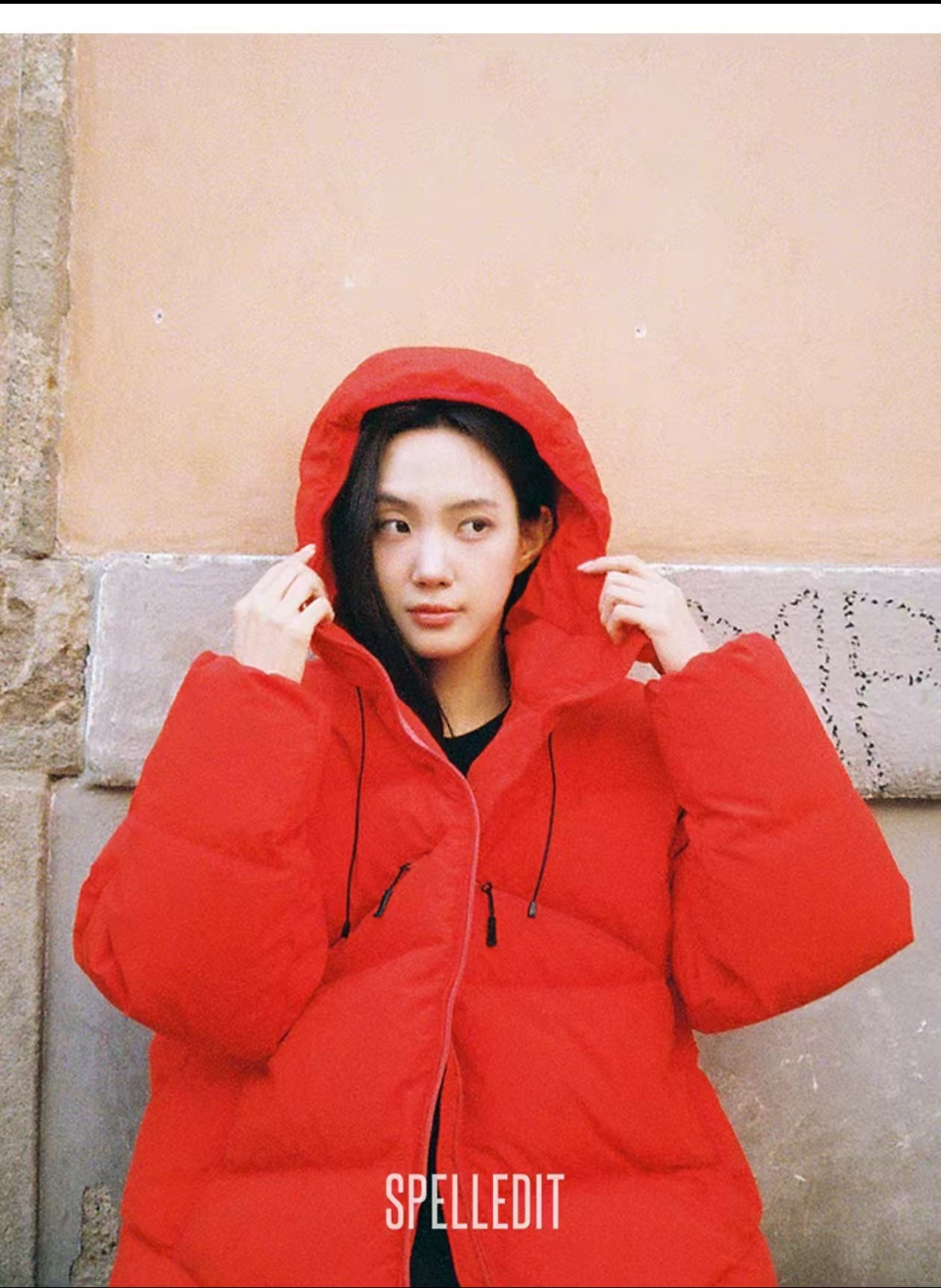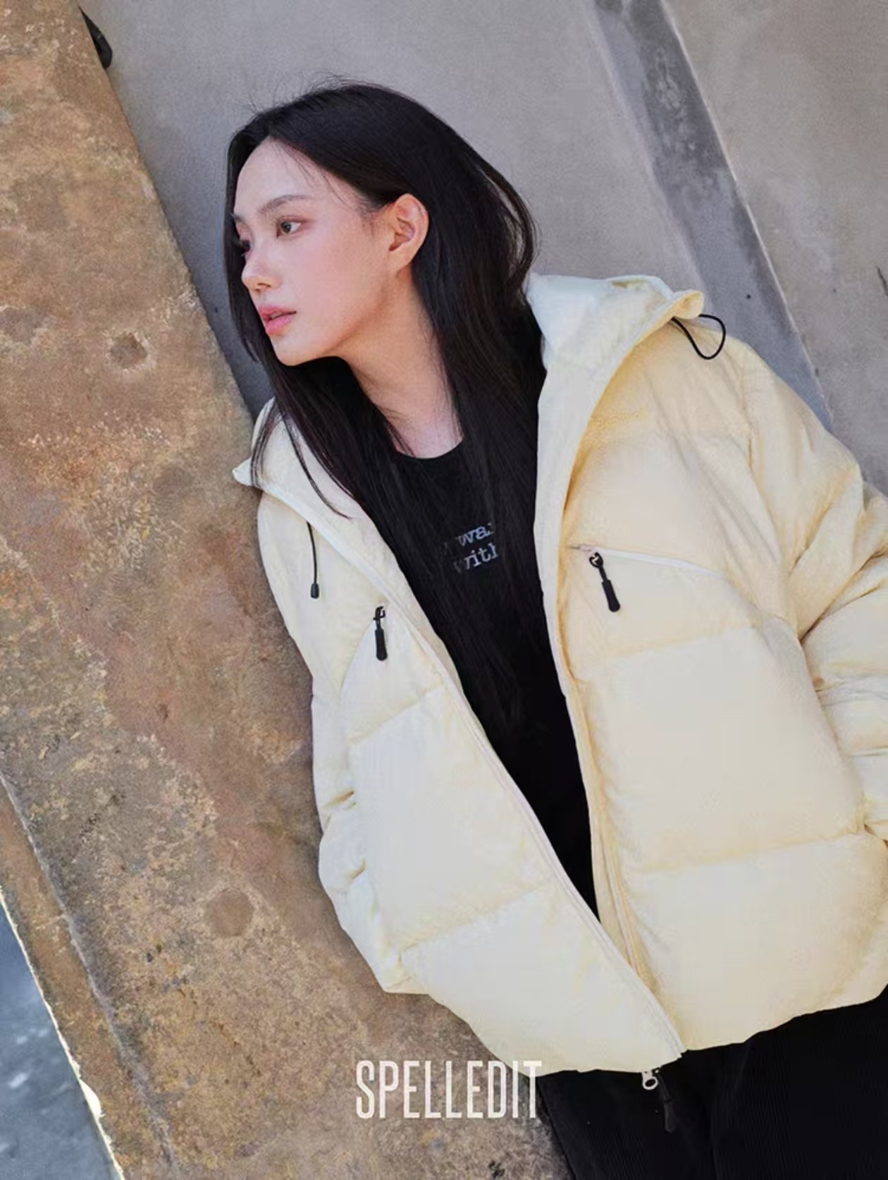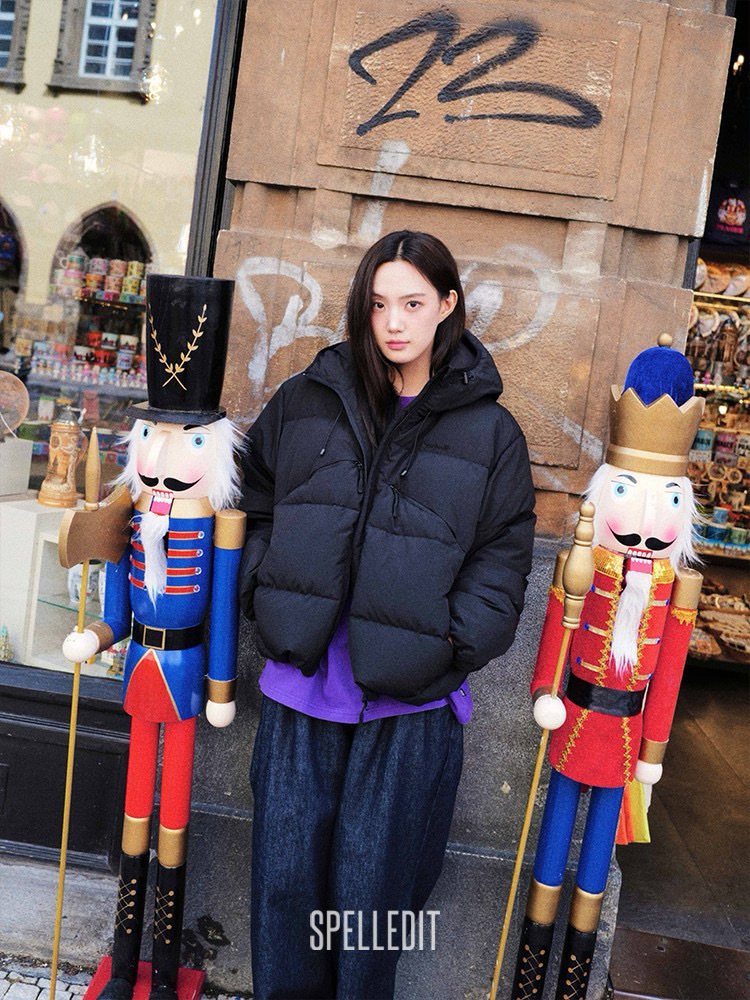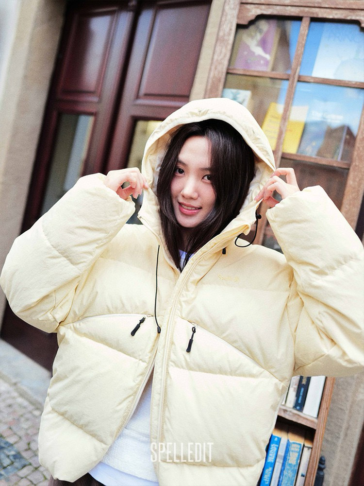 冬季新品口袋连帽羽绒服spelledit加厚休闲百搭短款羽绒外套女