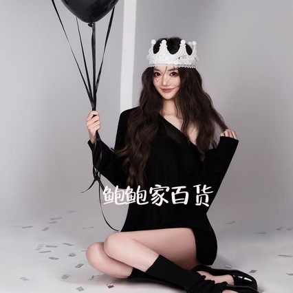 小红书公主甜美女王白色蕾丝毛球皇冠生日帽高级感派对发饰头饰