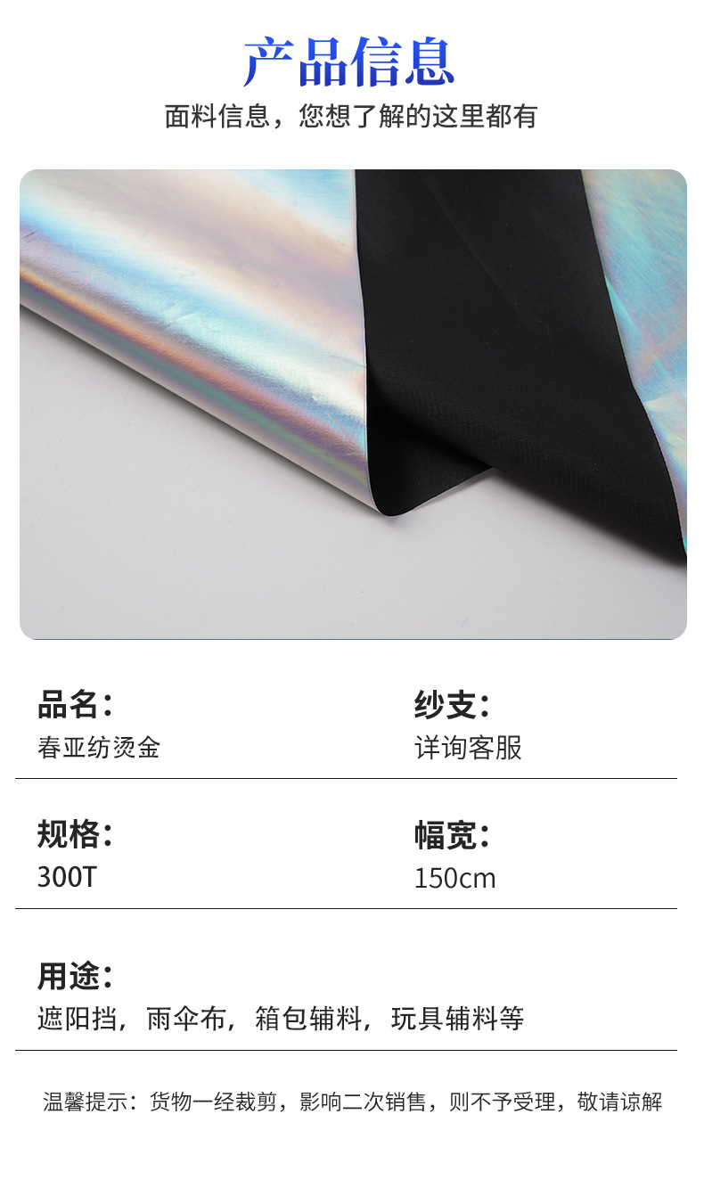 300t春亚纺烫金幻彩炫彩镭射玩具辅料汽车遮阳布防晒遮阳挡面料
