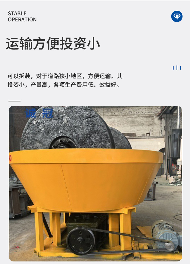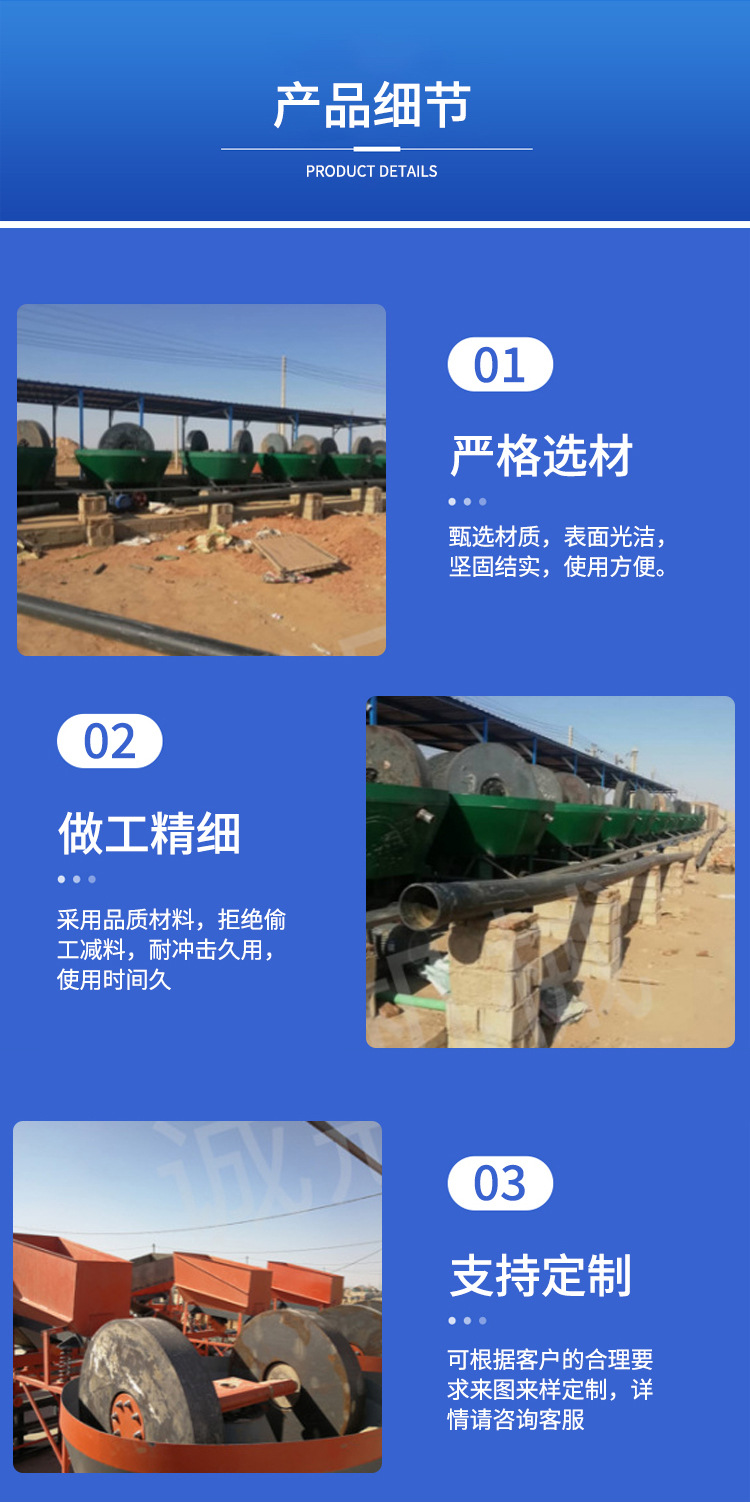 金矿选矿自浮式混汞碾金机岩金矿渣粉碎研磨机电碾机双轮湿碾机