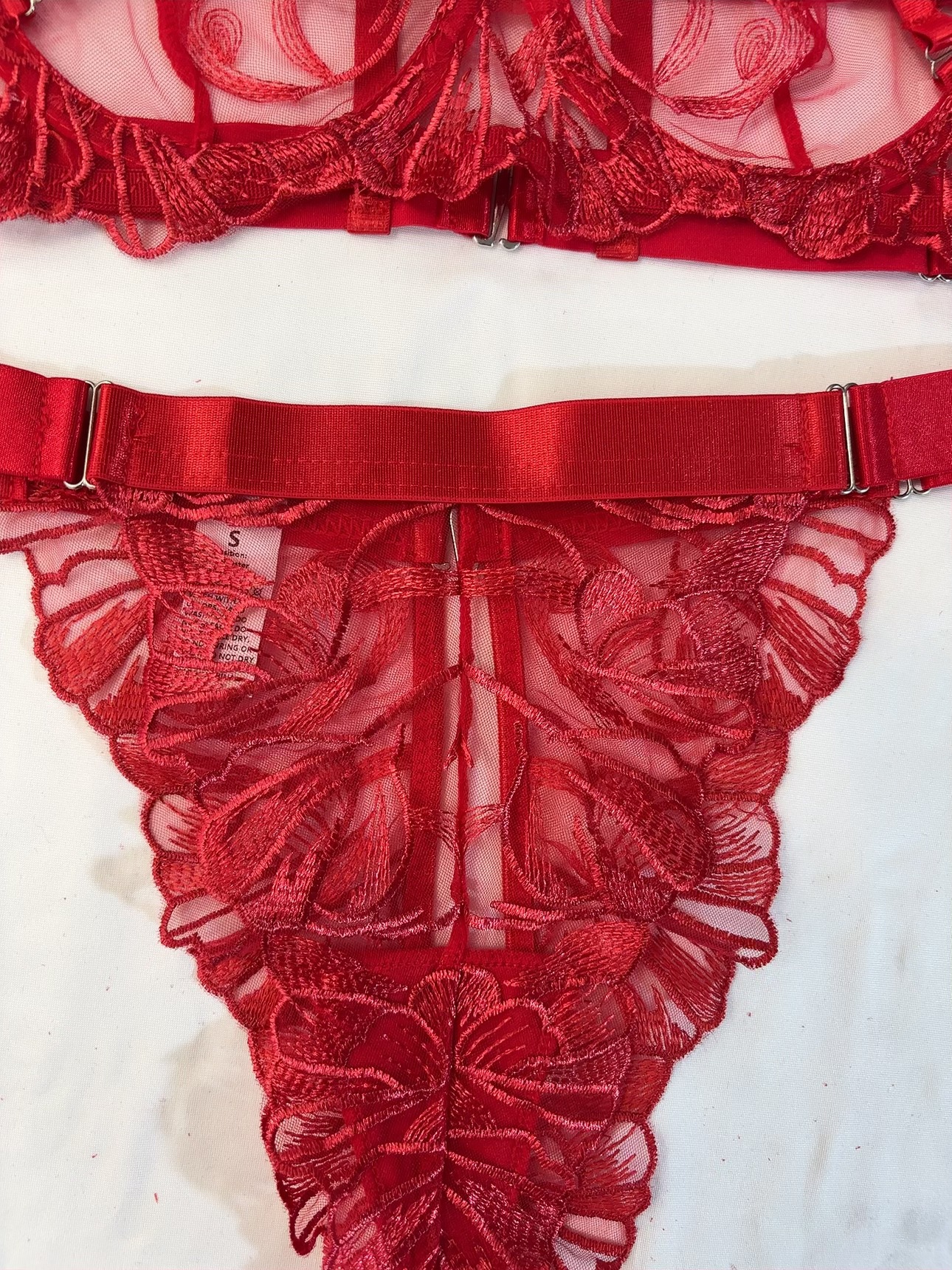 欧美外贸性感文胸黑色刺绣挂脖钢圈透视网纱情趣内衣塑身分体套装