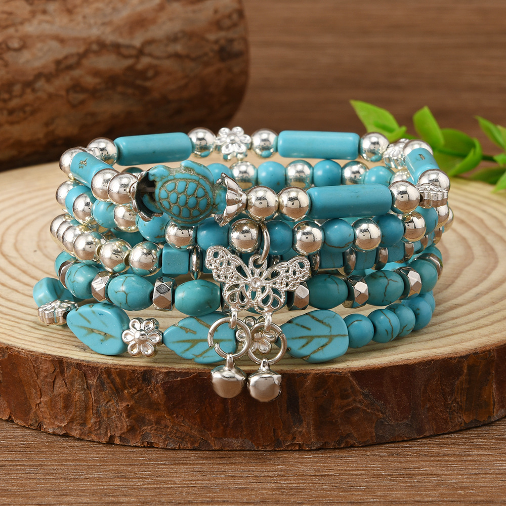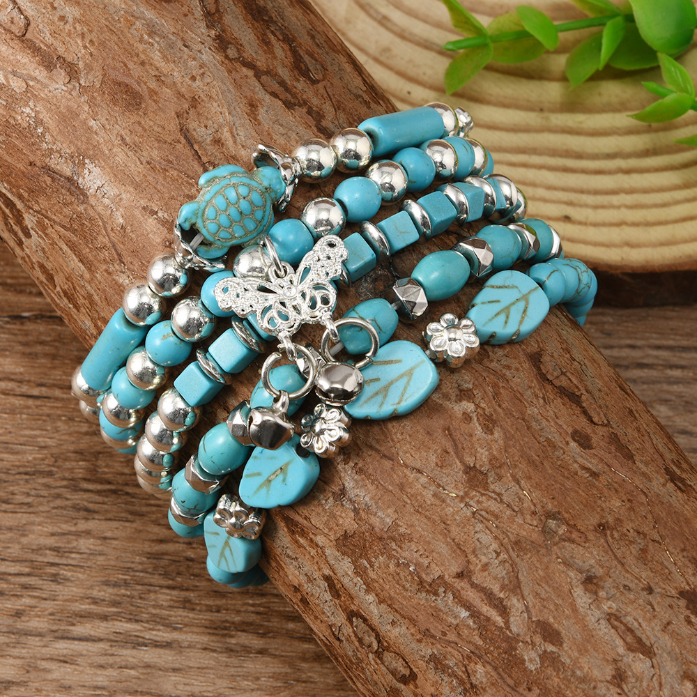 跨境波西米亚绿松石串珠手链套装女士多层弹力手串复古时尚饰品,批发价,价格:6.55,厂家直销,跨境波西米亚绿松石串珠手链套装女士多层弹力手串复古时尚饰品,免费拿样。