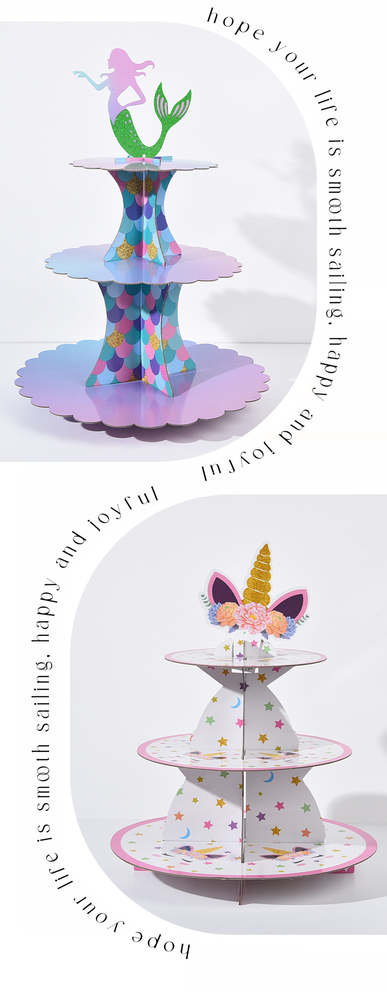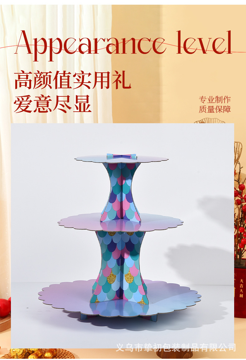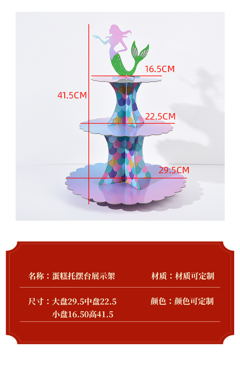 婚庆甜品台展示架生日派对用品纸质三层美人鱼蛋糕架创意造型