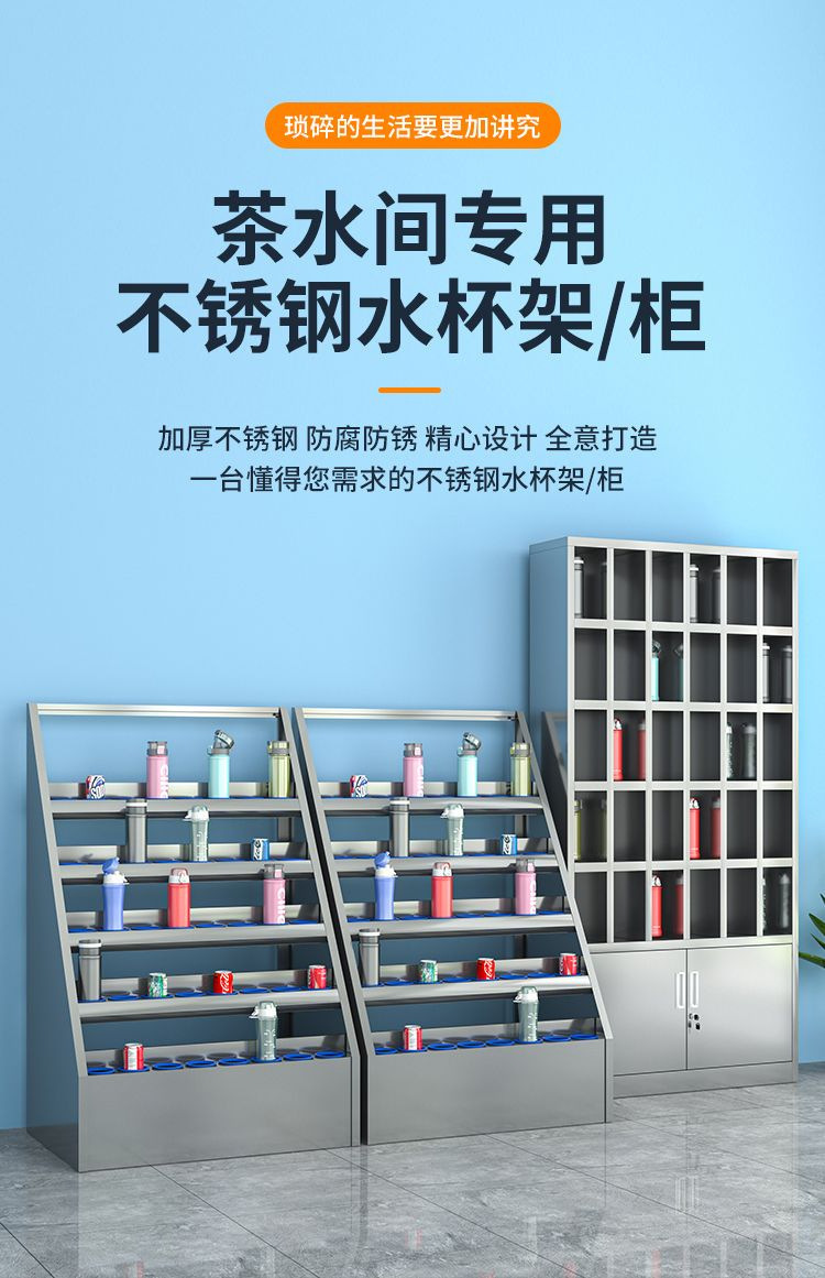 304不锈钢水杯架工厂员工茶杯柜茶水间水杯存放柜多格水杯放置柜