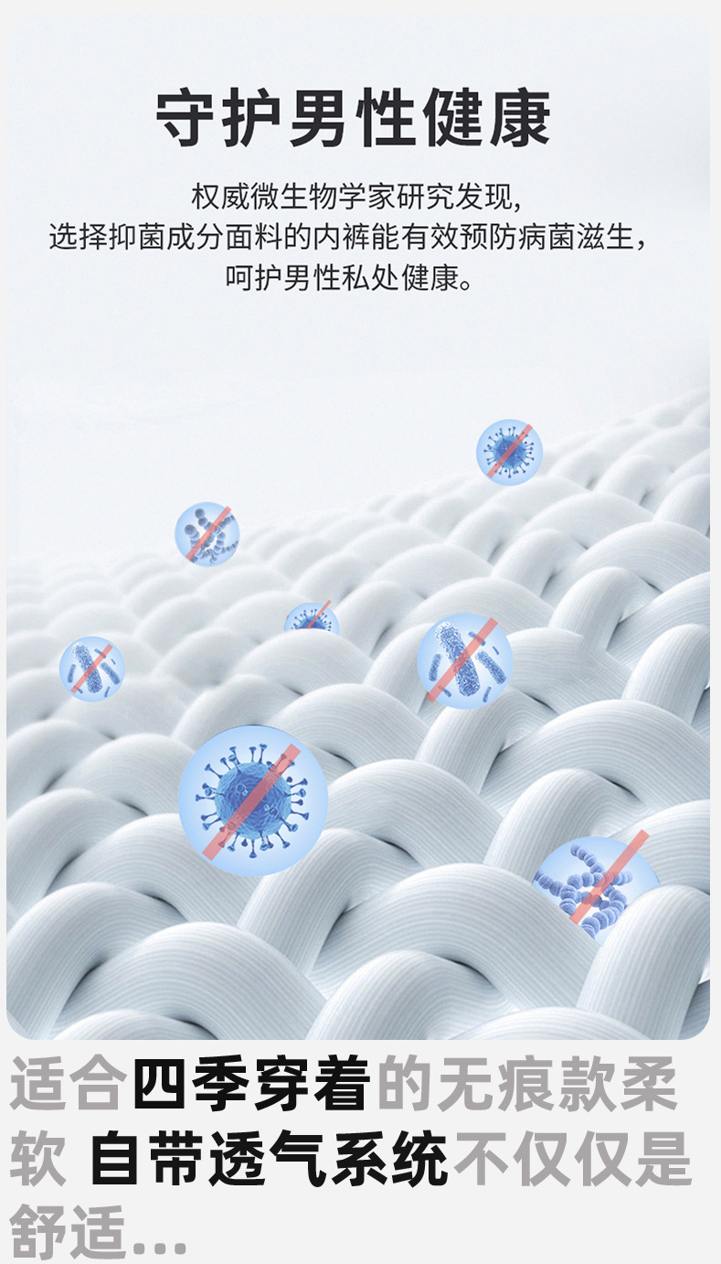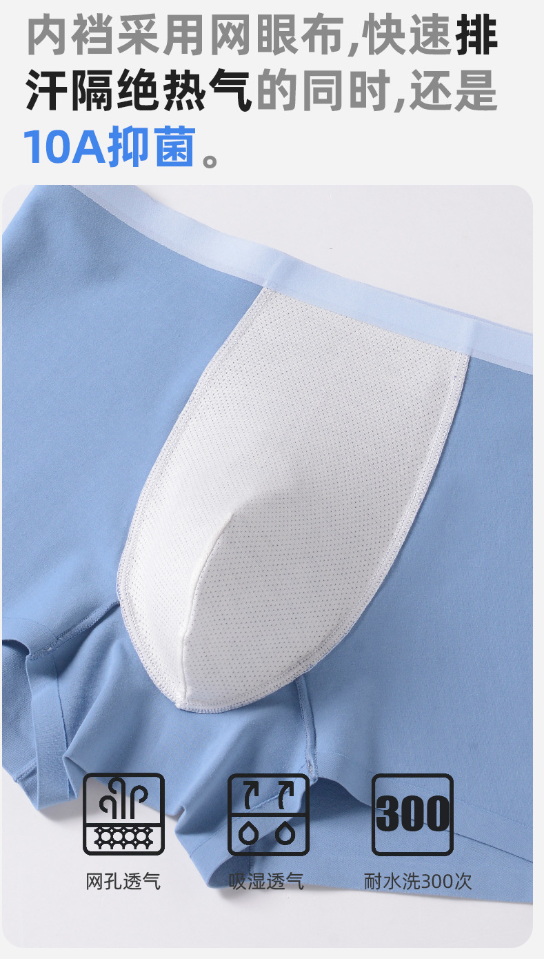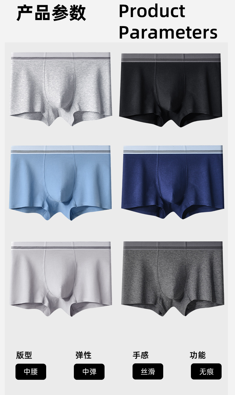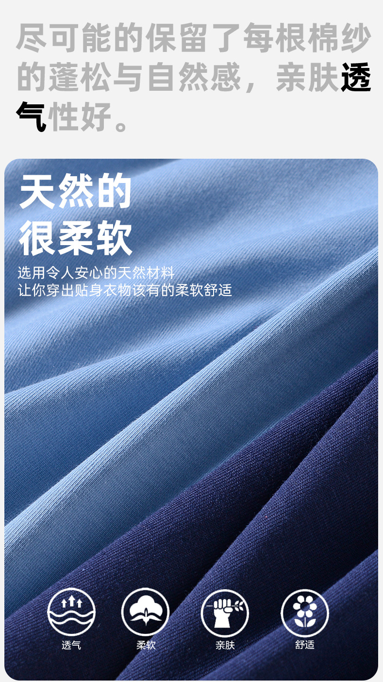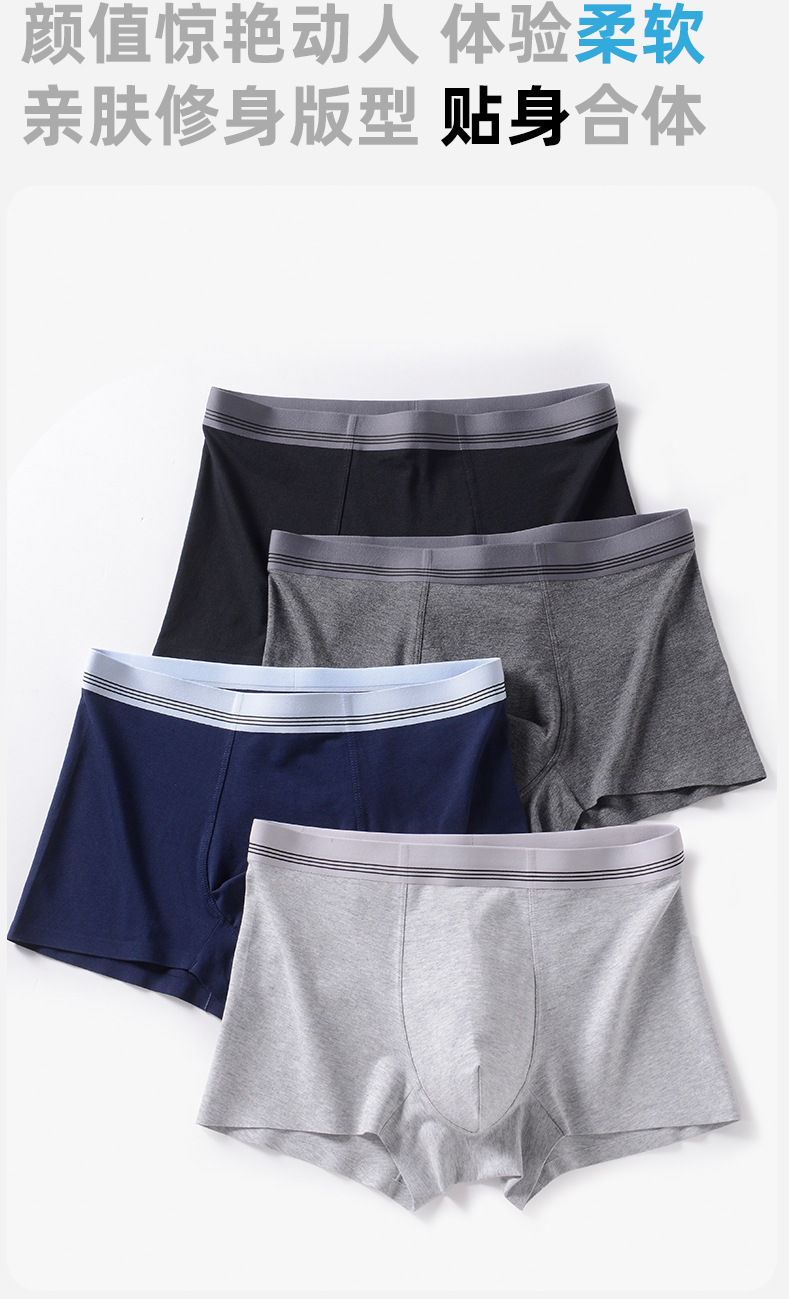 60S长绒棉男士平角内裤冬季抗菌舒适轻薄a类无痕透气四角舒适短裤