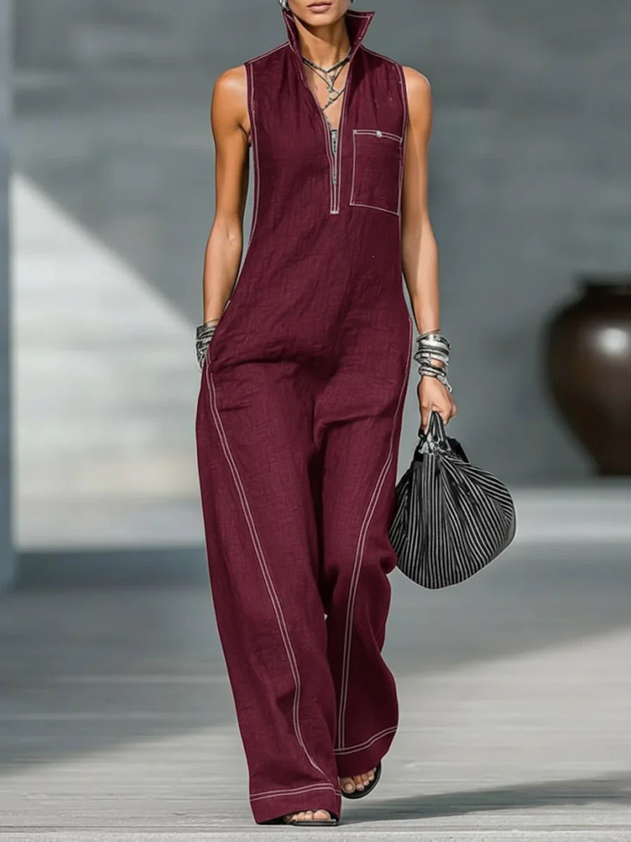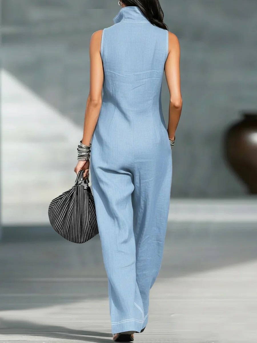 2026新款跨境欧美亚马逊独立站爆款女士立领无袖休闲宽松棉麻连体