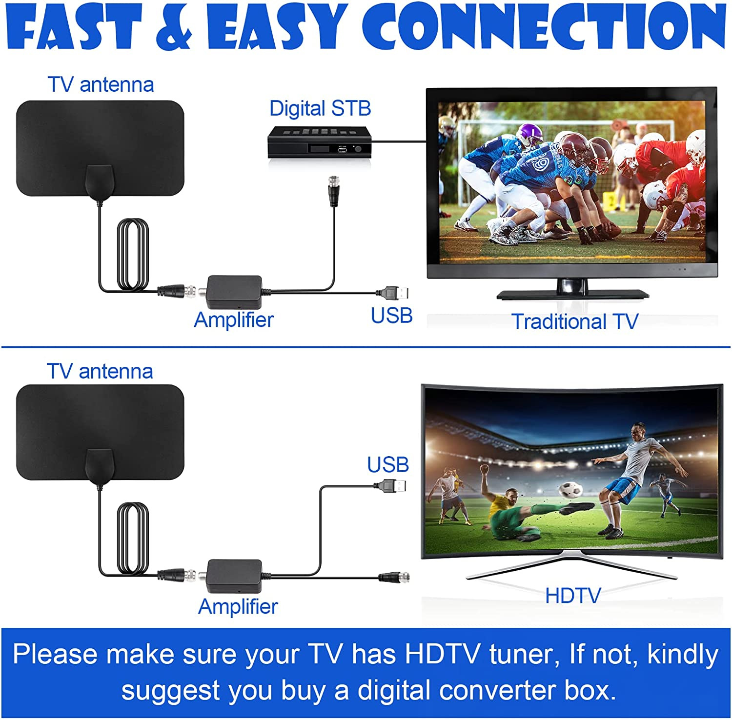 欧美HDTV室内电视天线,外观设计美观大方,轻薄,体积小等特点,背部采用粘贴式可撕胶,便于安装,可做IEC头,默认出货F头IEC转接头。