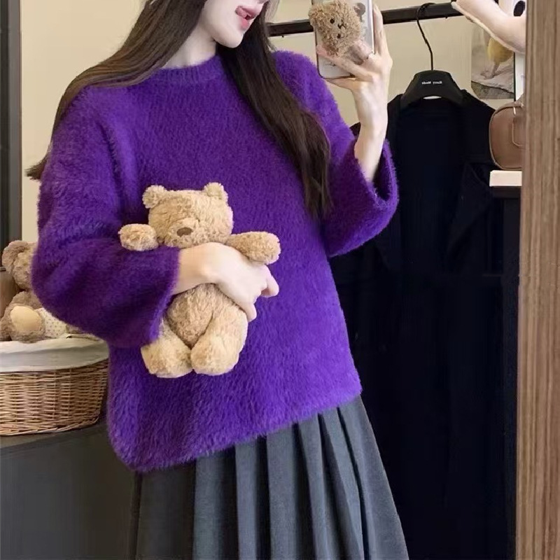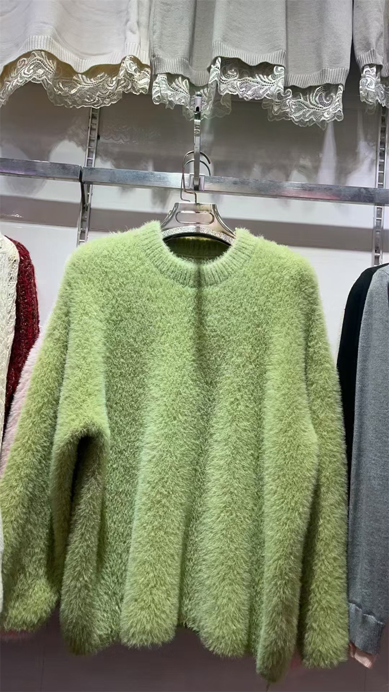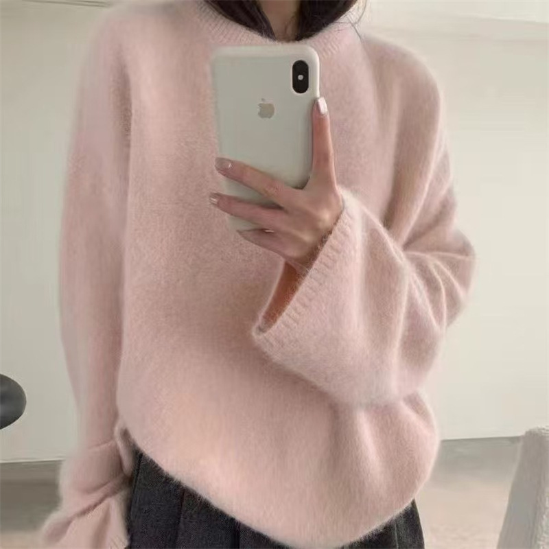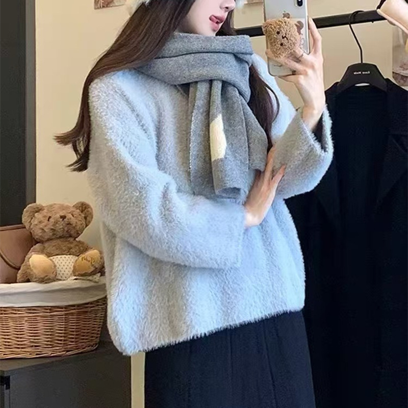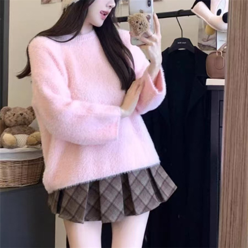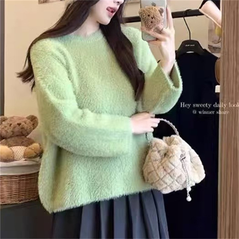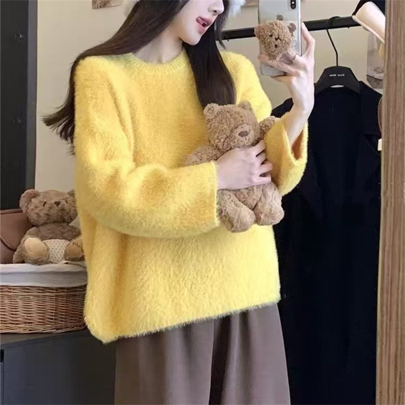 软糯温柔风宽松纯色套头仿水貂绒毛衣女秋冬韩版加厚慵懒风针织衫