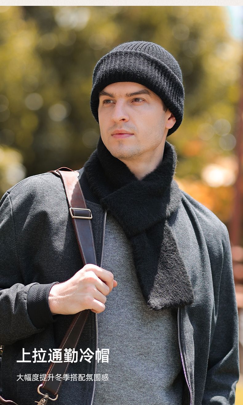 帽子冬季男士针织护耳防风毛线防寒头套面罩保暖冷帽两用帽圆顶