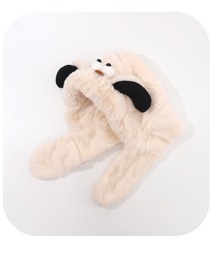 宝宝帽子冬季男女童防风护耳帽围巾一体儿童卡通围脖加绒毛绒帽