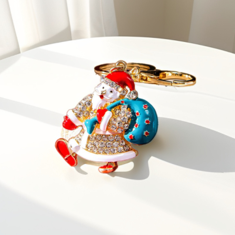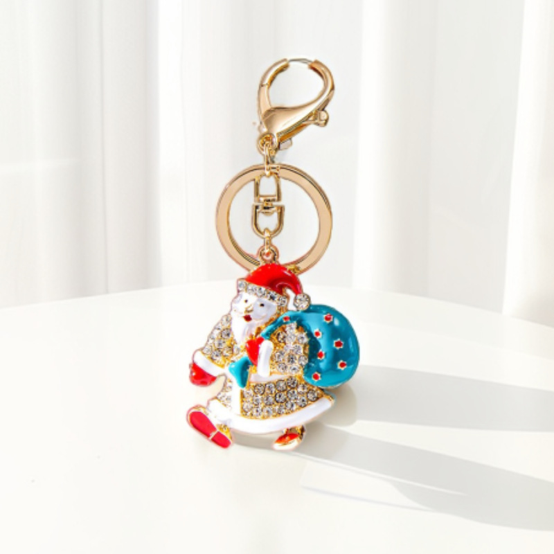 跨境可爱镶钻圣诞老人卡通钥匙扣合金圣诞节汽车钥匙圈包包挂饰品