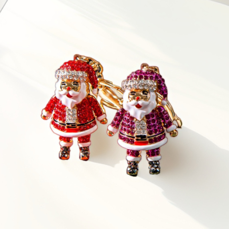 跨境创意镶钻圣诞老人汽车钥匙扣合金圣诞节钥匙扣汽车包包挂饰品