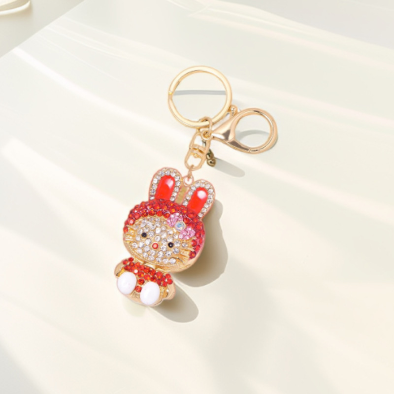 跨境个性可爱卡通镶钻猫咪钥匙扣合金动物吊坠钥匙圈汽车包包挂件