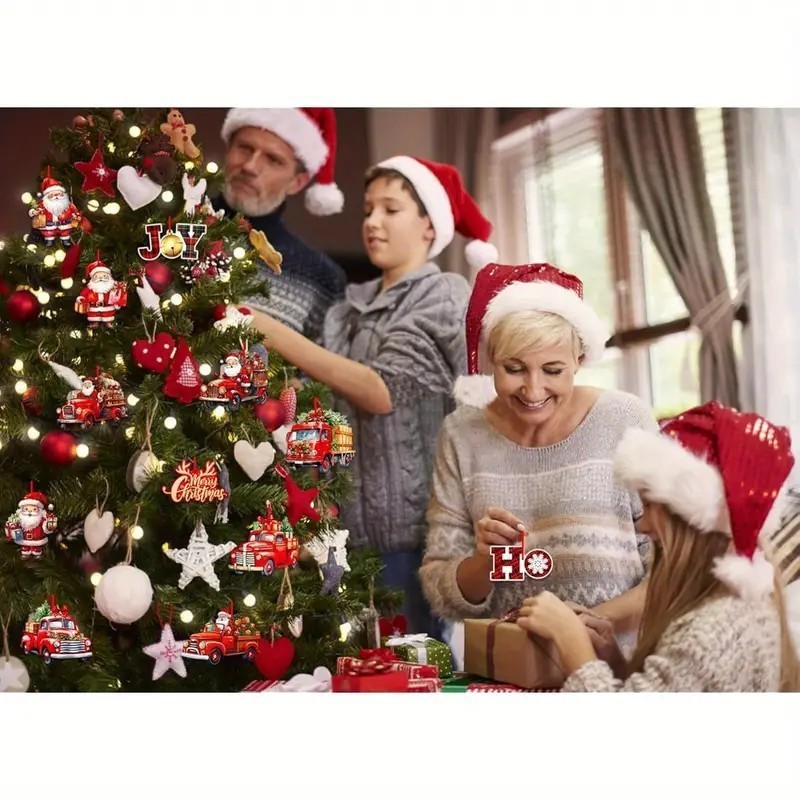 跨境圣诞树装饰品圣诞老人挂饰木制趣味装饰挂件节日圣诞树装饰