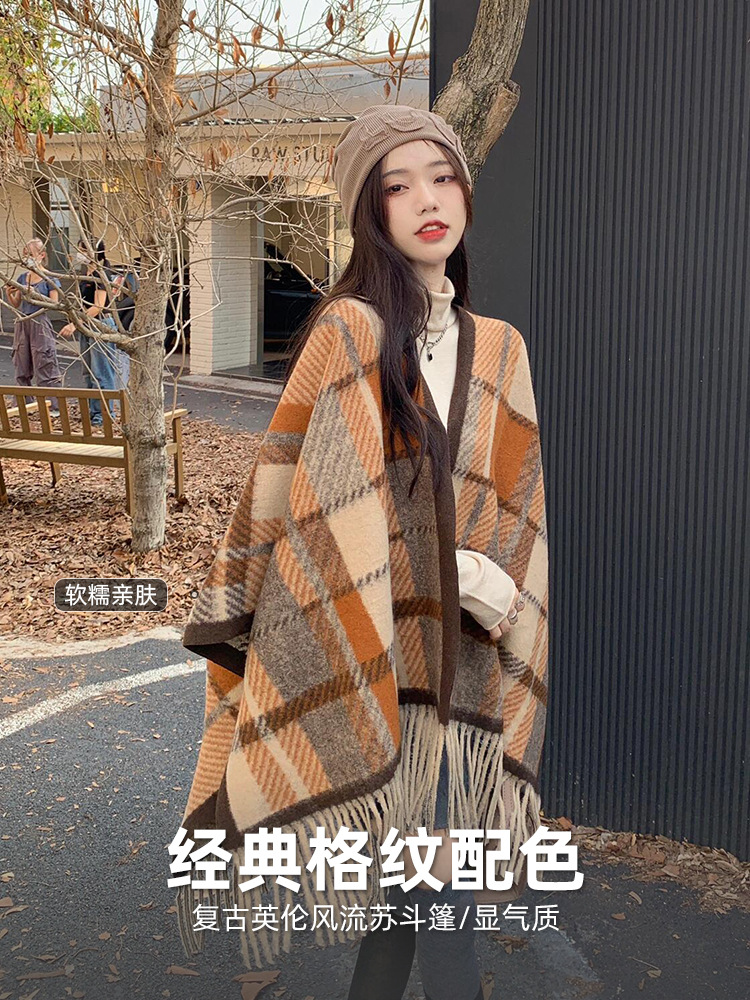 美拉德披肩外套女秋冬新款韩版外搭两用保暖格纹披风百搭围巾斗篷,批发价,价格:28,厂家直销,美拉德披肩外套女秋冬新款韩版外搭两用保暖格纹披风百搭围巾斗篷,免费拿样。