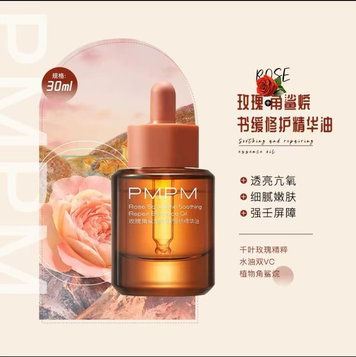PMPM玫瑰精华油面部舒缓修护抗保湿皱紧致精油面部护肤精华男女用