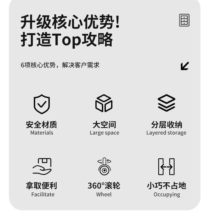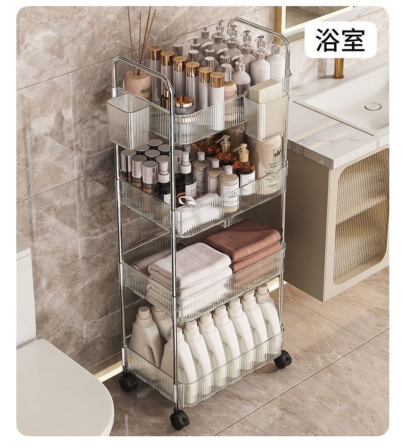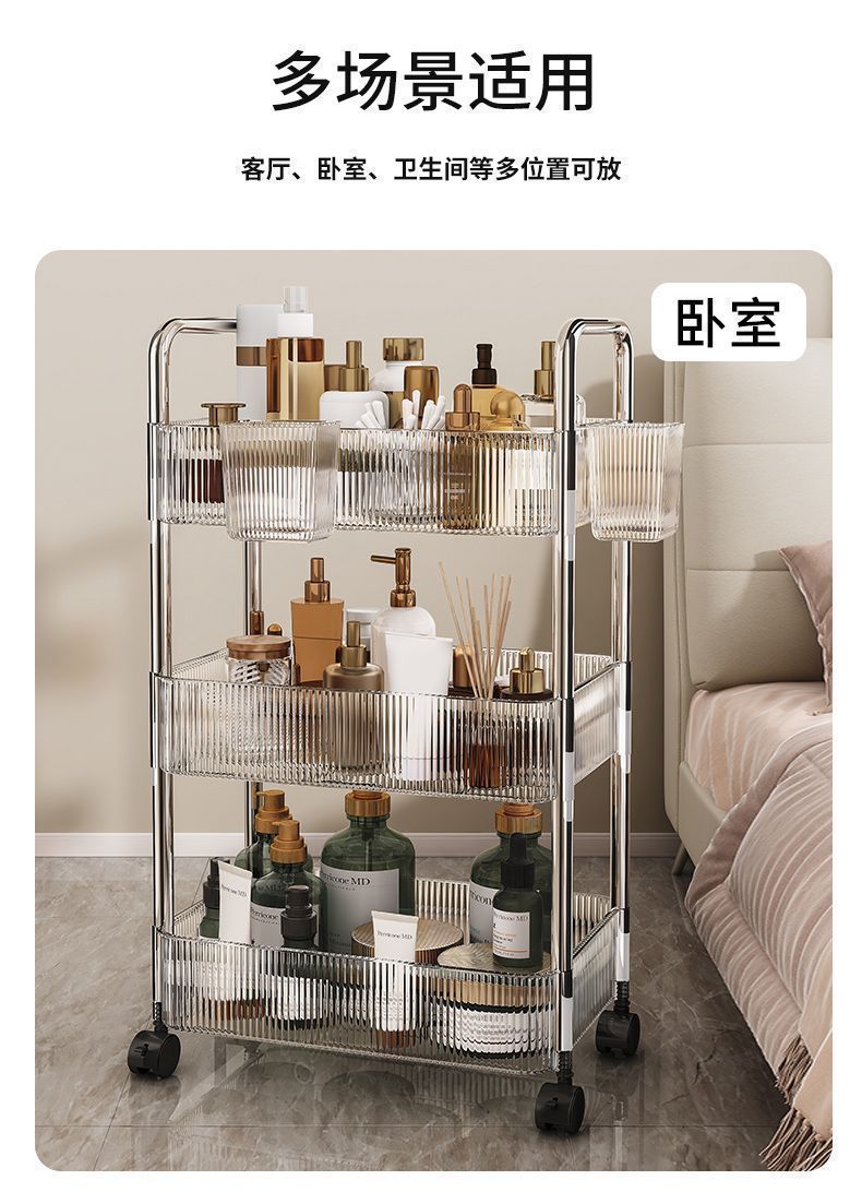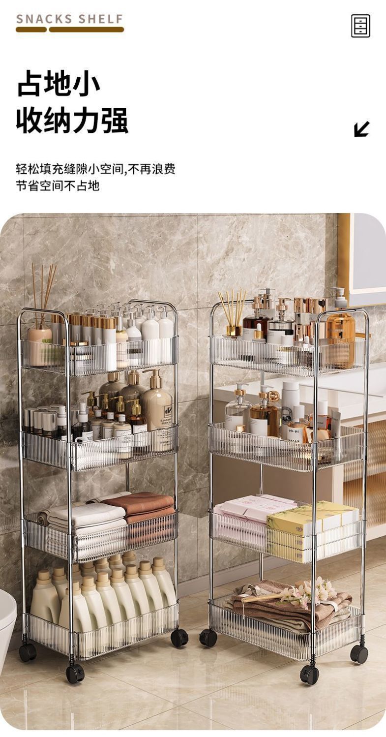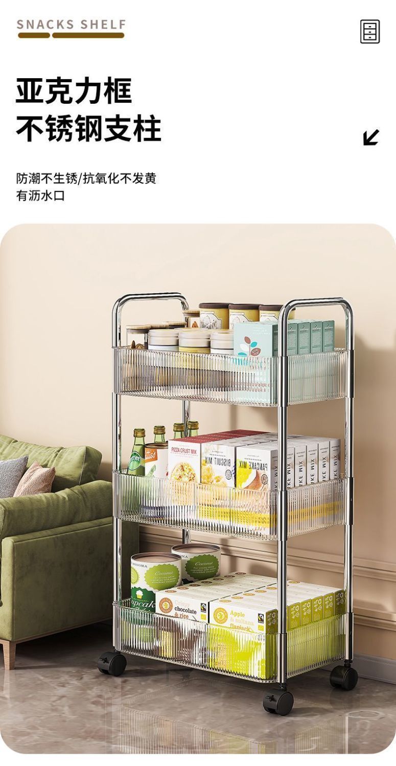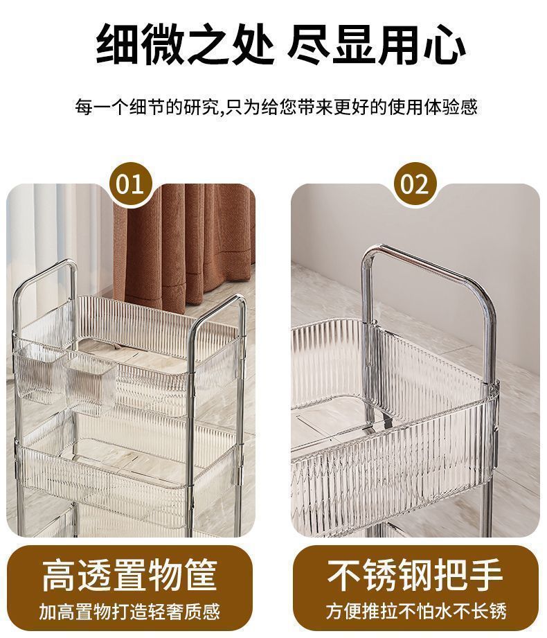 透明亚克力落地零食小推车卧室置物架客厅多层移动浴室卫生间收纳