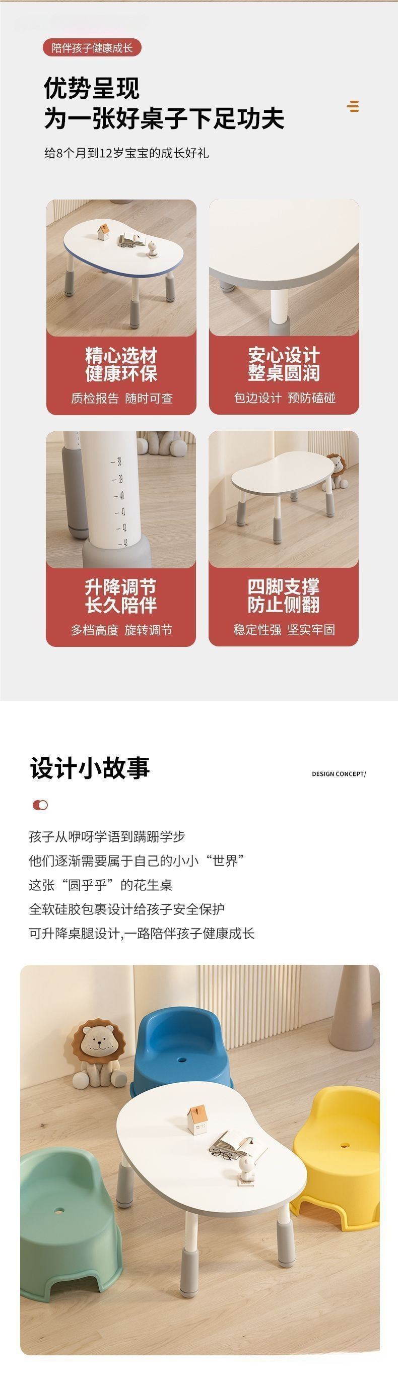 儿童花生桌宝宝学习桌婴幼儿桌幼儿园早教桌子孩子可升降阅读区桌