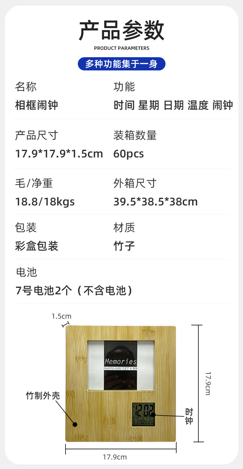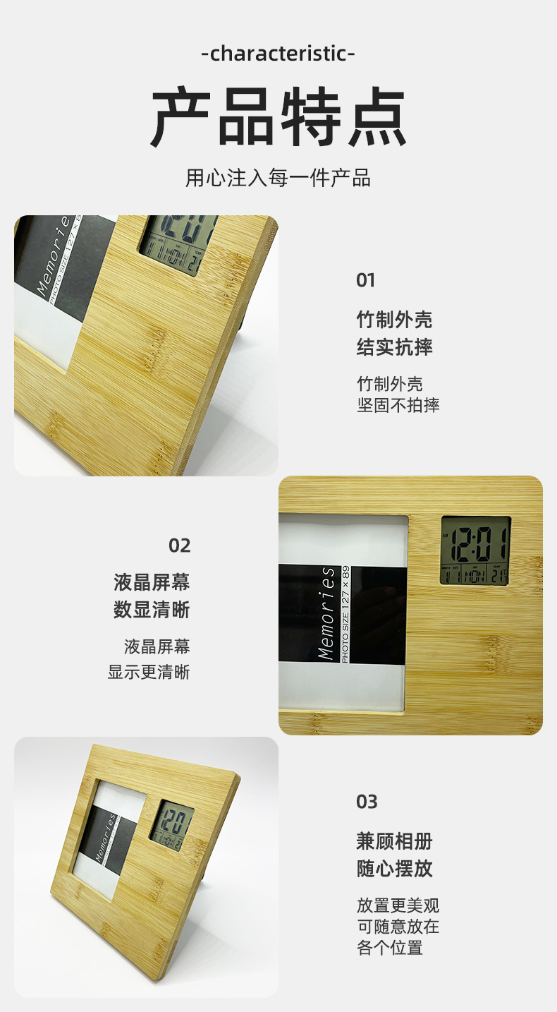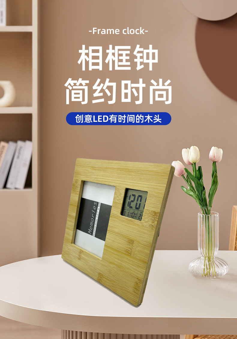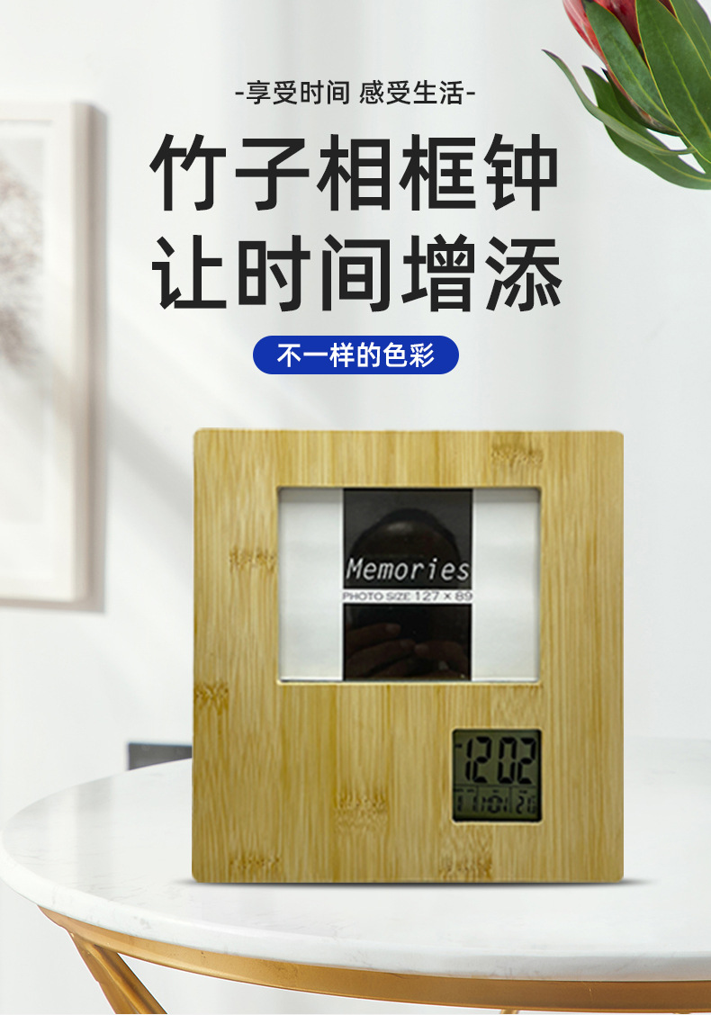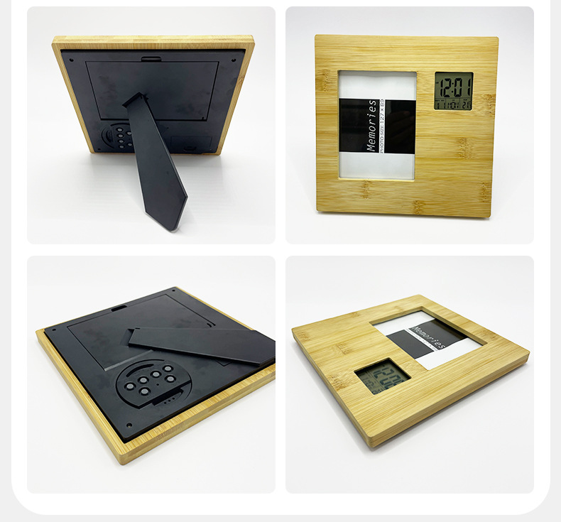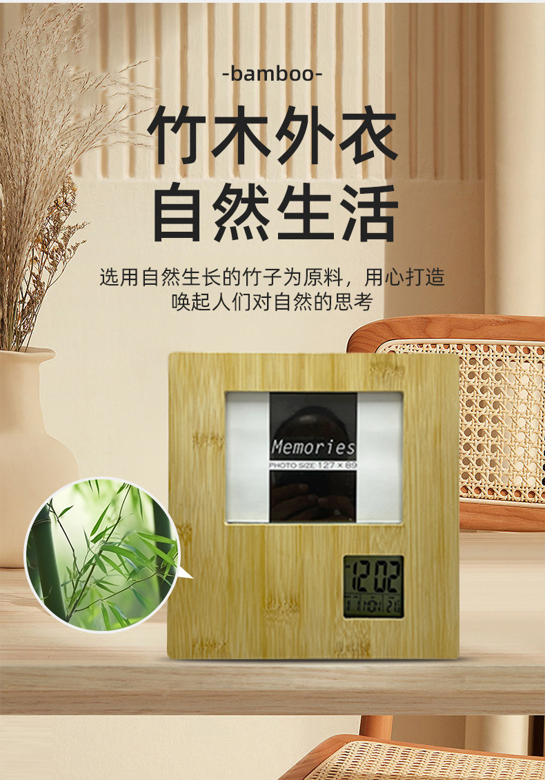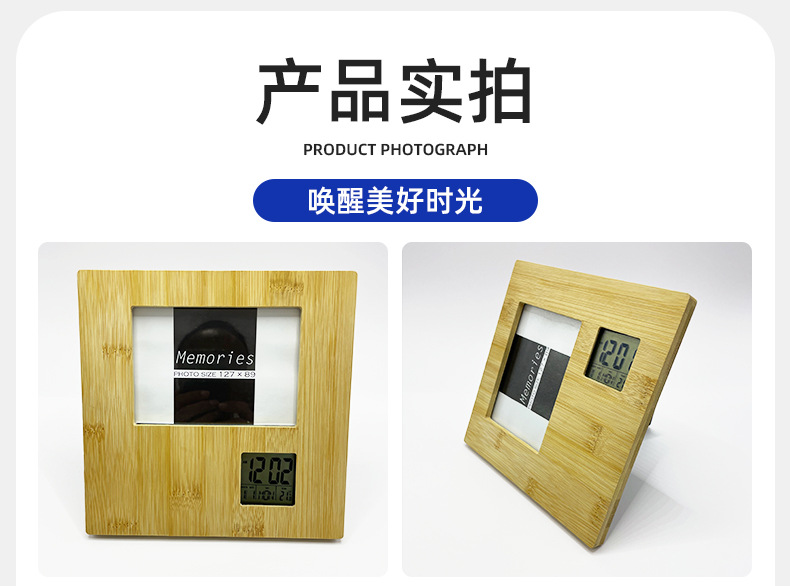 多功能相框钟万年历相框钟全竹相册闹钟纽扣电池纯竹木相框时钟
