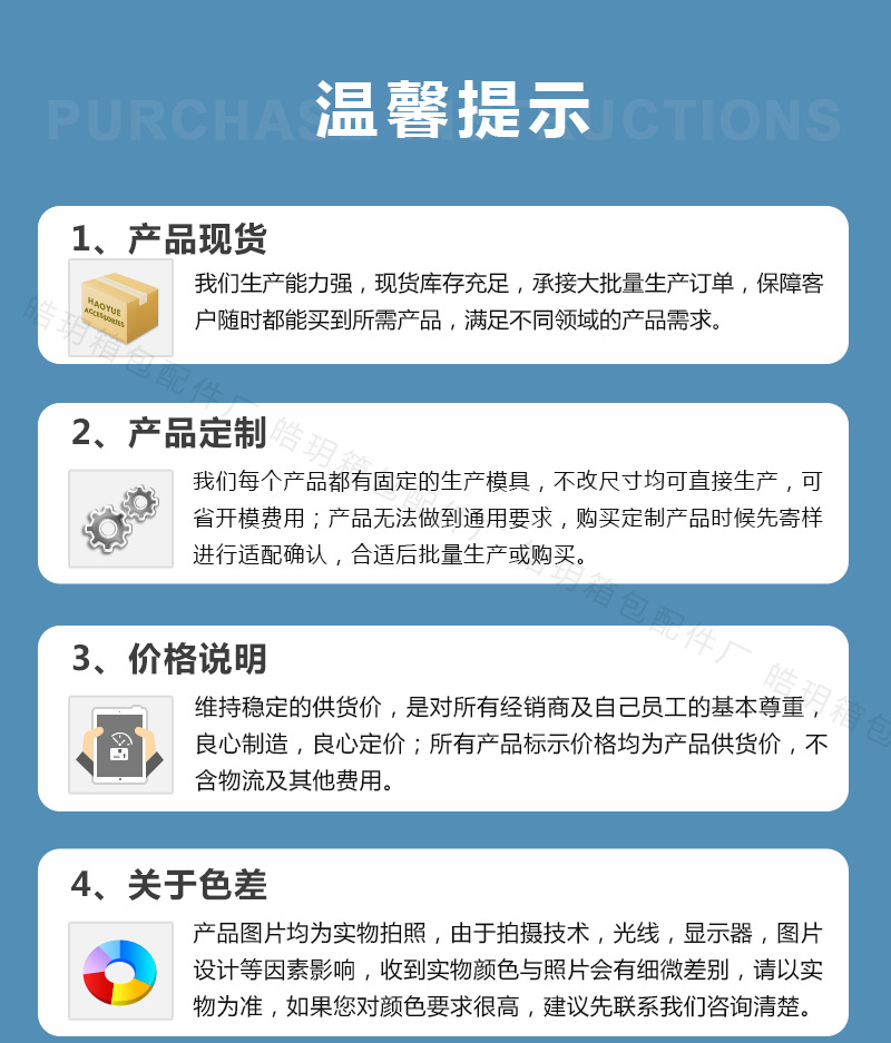 产品均为实物拍照,但由于拍摄光线,不同设备显示器,图片设计等因素影响,个别颜色可能会存在一点点色差,请以实物为准。同一生产批次颜色相同。如果你对颜色要求很高,建议购买前先咨询清楚,可以拿样确认,也可以来样定制。