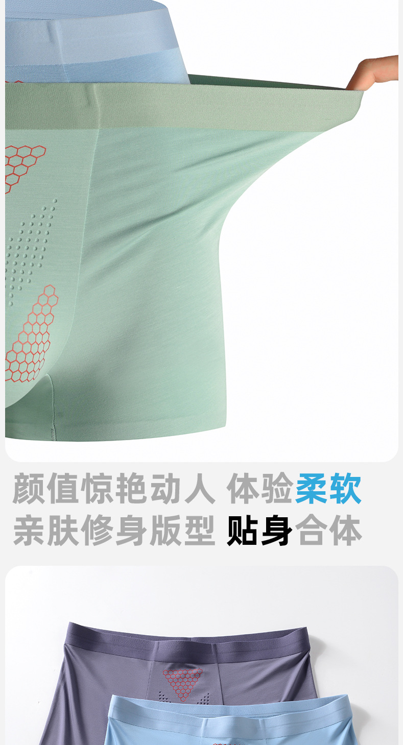 新品60S莫代尔男士内裤10A生蚝素负离子抗菌无痕中腰透气平角盒装