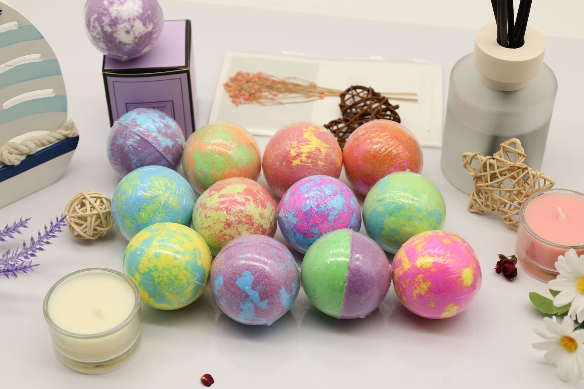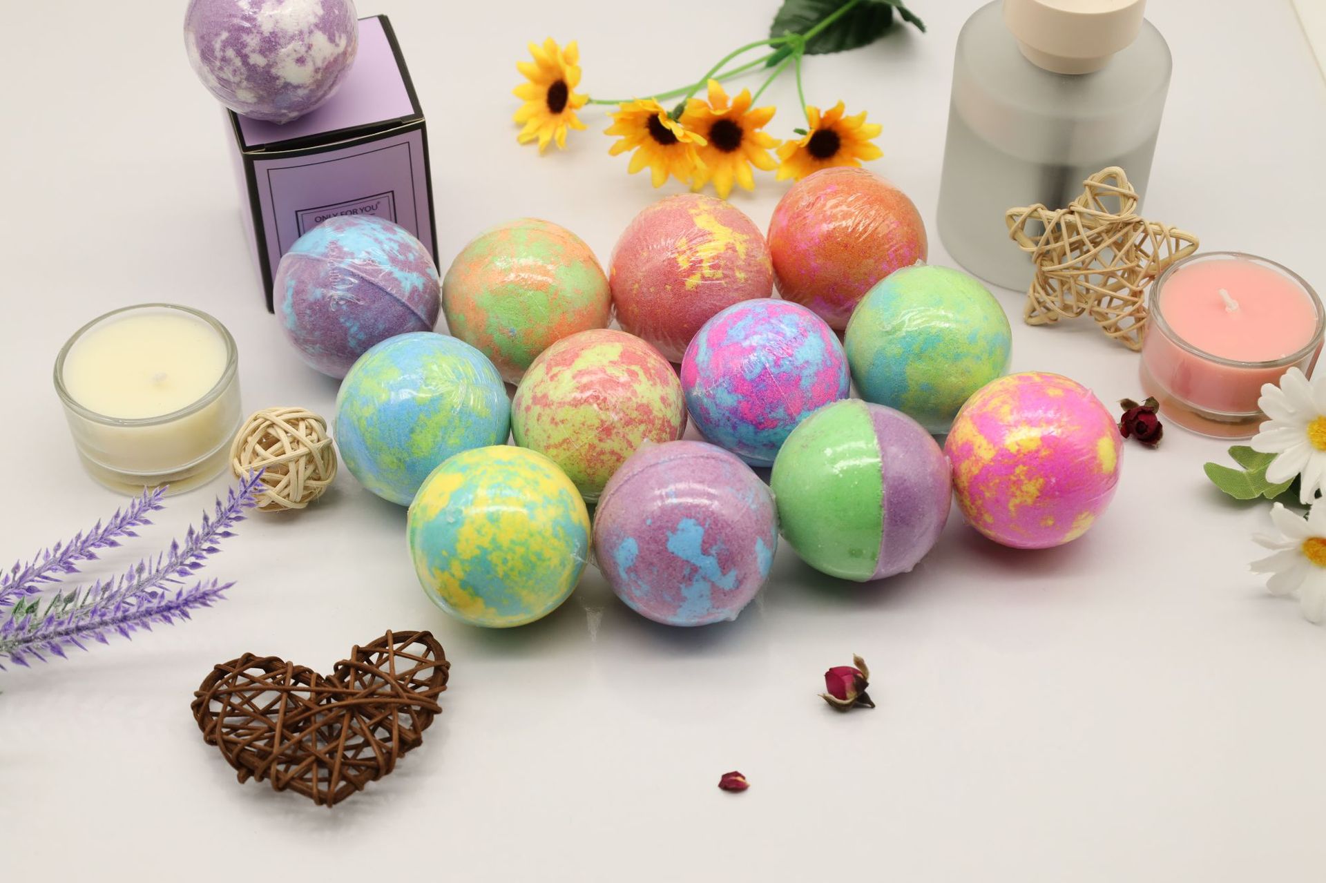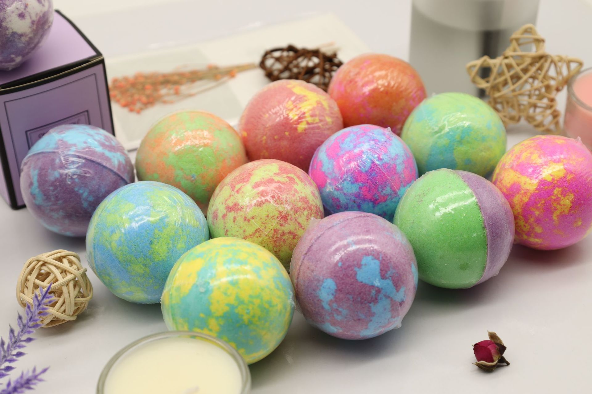 跨境现货定制混色球精油浴盐球泡脚球泡澡球身体泡泡浴香薰爆炸盐