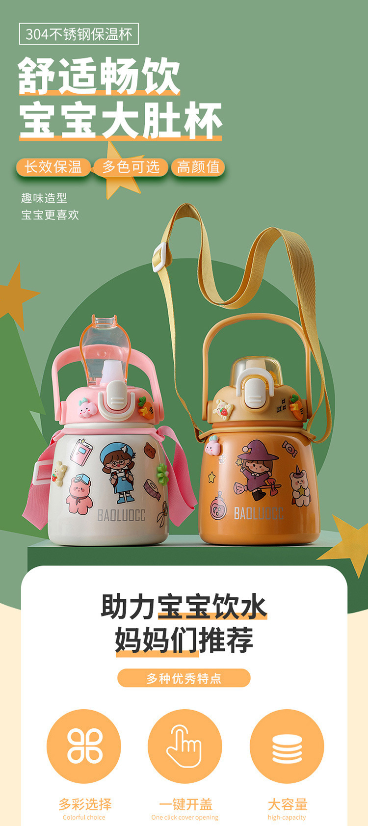 大容量可爱网红小肚保温杯带吸管背带304不锈钢学生防摔保温水杯,批发价,价格:15,厂家直销,大容量可爱网红小肚保温杯带吸管背带304不锈钢学生防摔保温水杯,免费拿样。