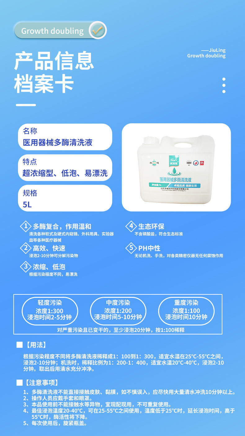 医用器械5L多酶清洗剂复合酶医疗器械清洗液医院中性多酶清洗液