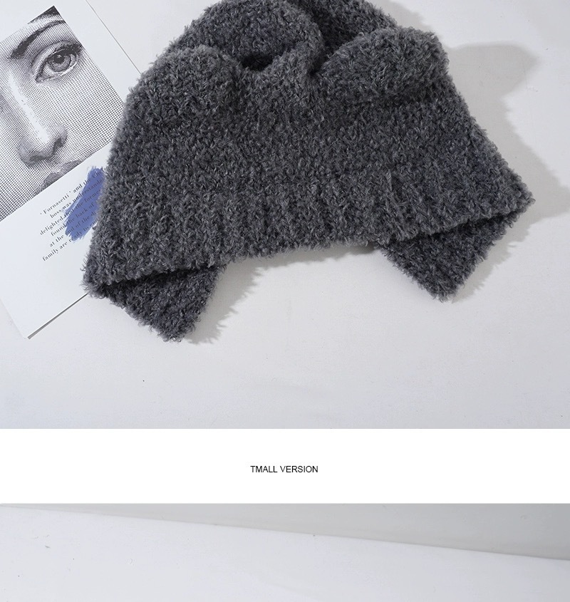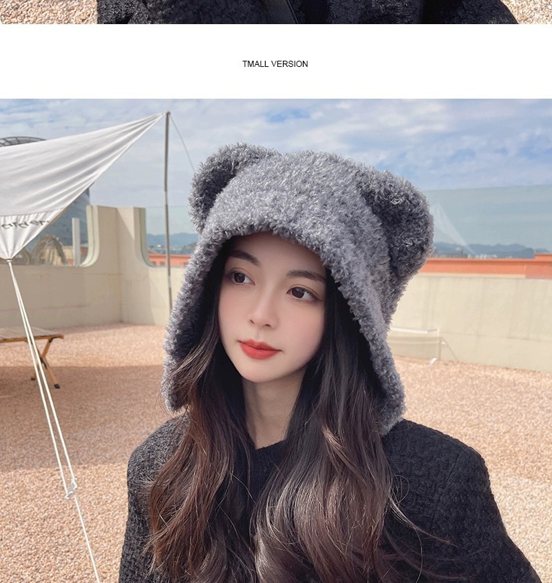 小熊针织帽子可爱毛线毛绒女秋冬季百搭韩版保暖毛绒大头围显脸小
