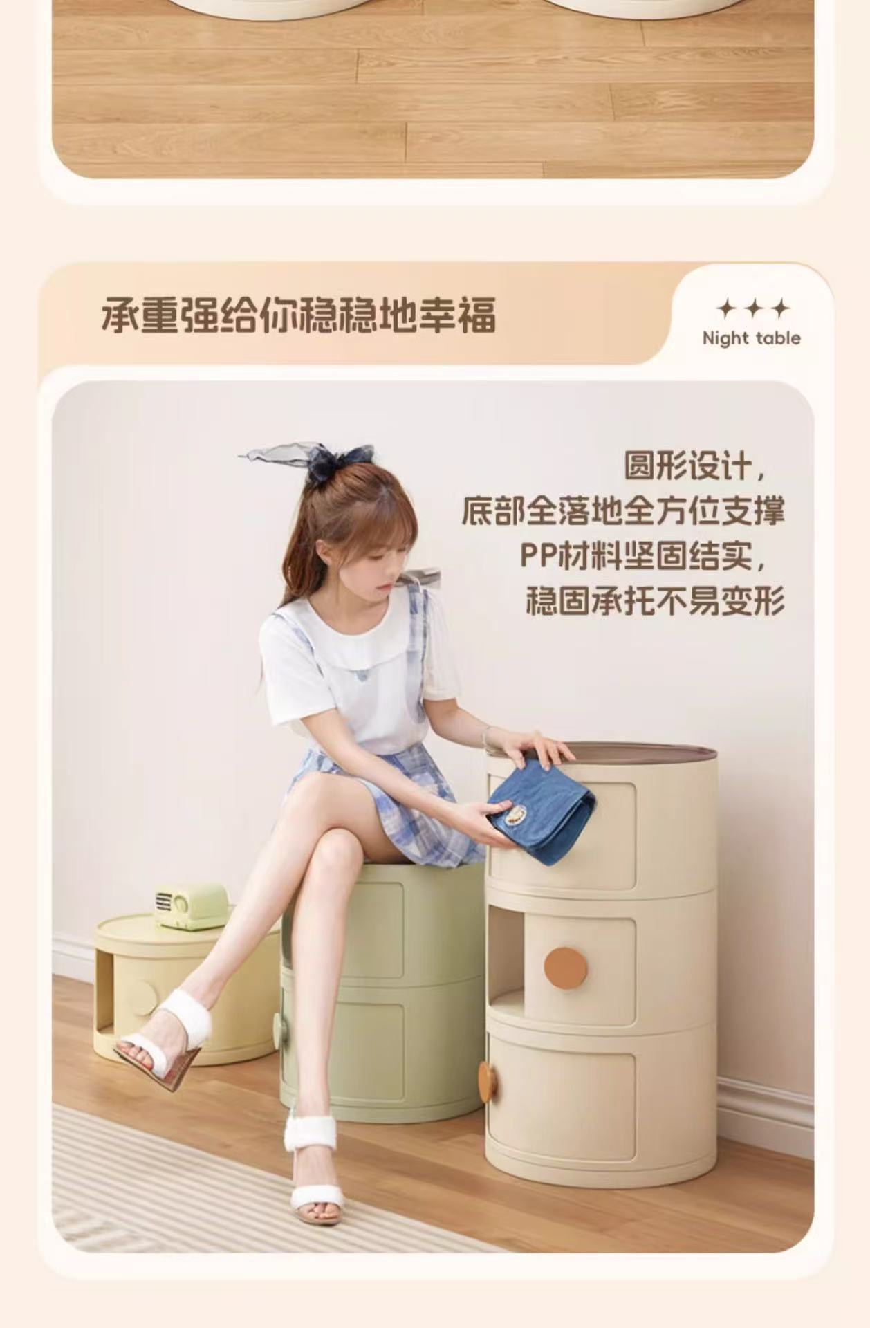 创意收纳箱ins圆形床头柜置物架迷你马卡龙收纳柜简约现代小边几