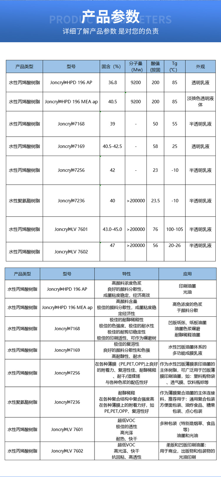 巴斯夫丙烯酸树脂JoncrylHPD水性树脂高附着力通用底漆油墨用乳液
