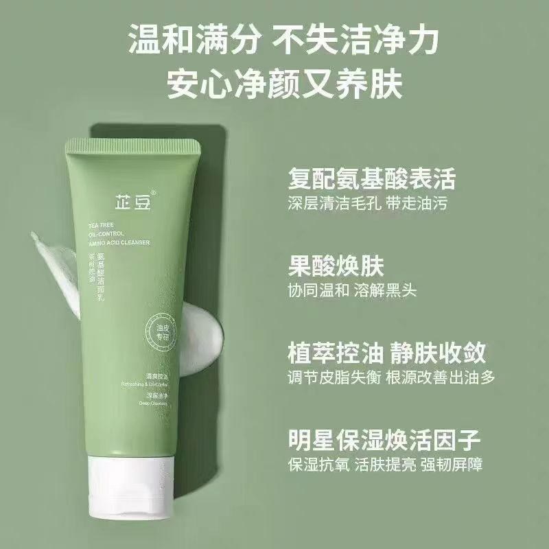 芷豆茶树氨基酸洗面奶温和祛痘印收缩毛孔抗痘学生男女洁面乳