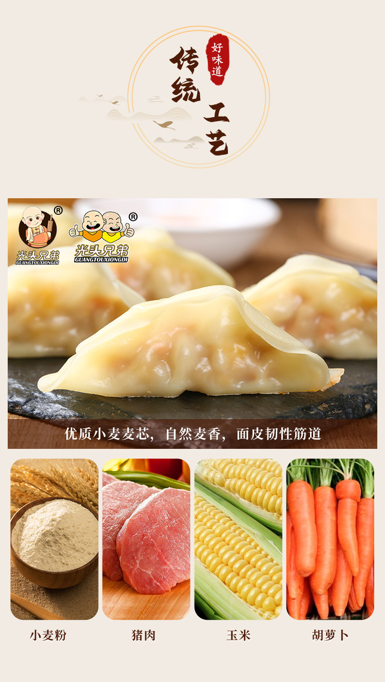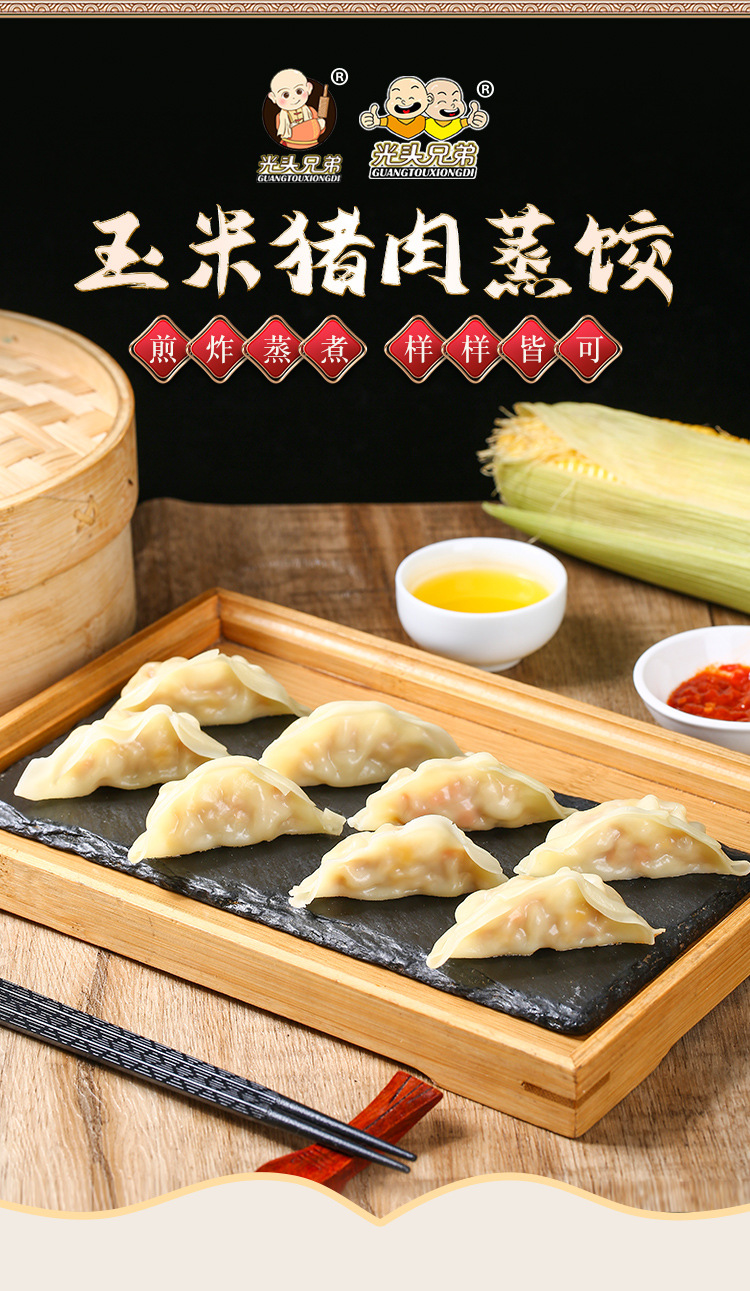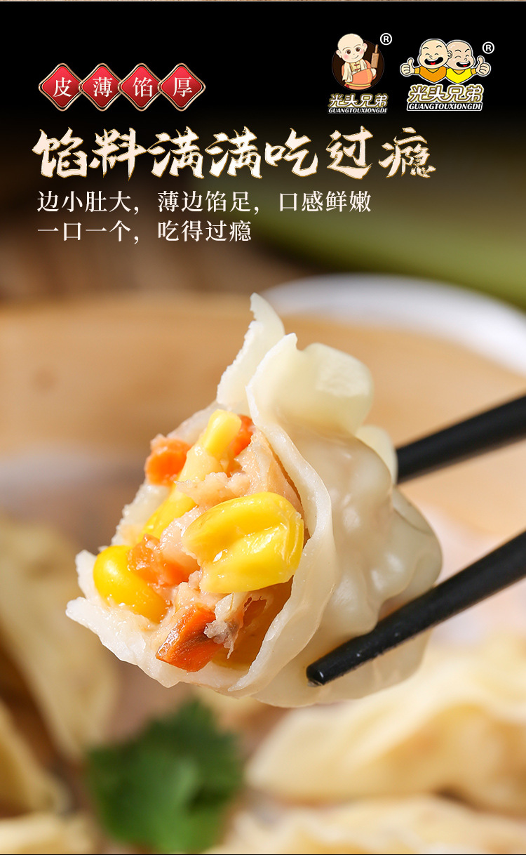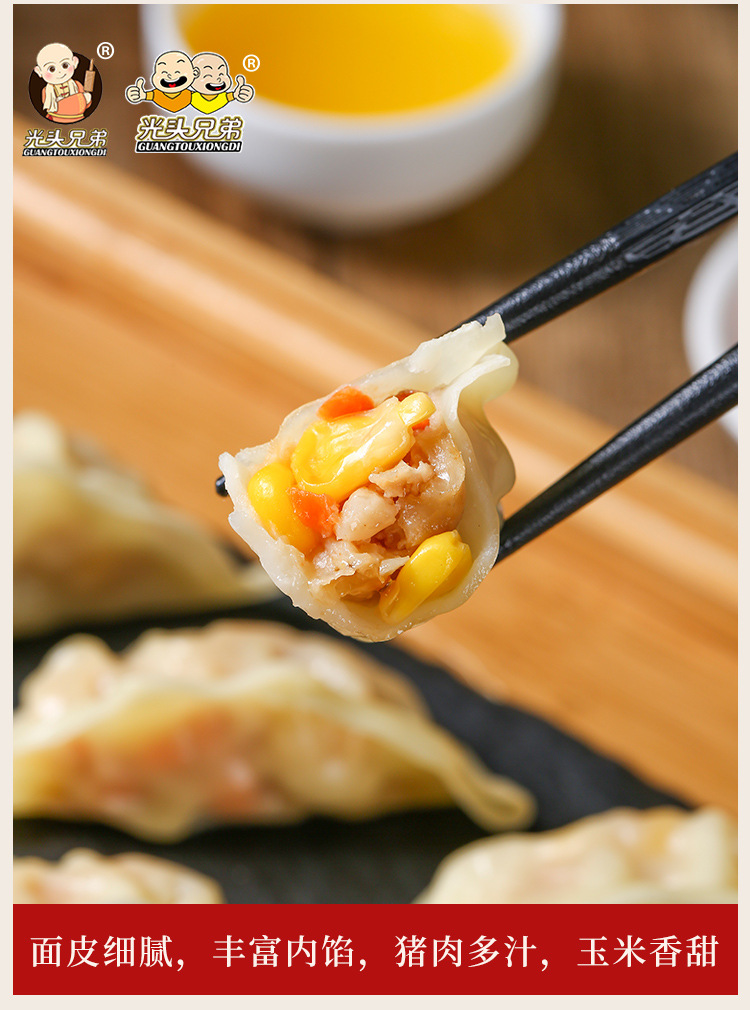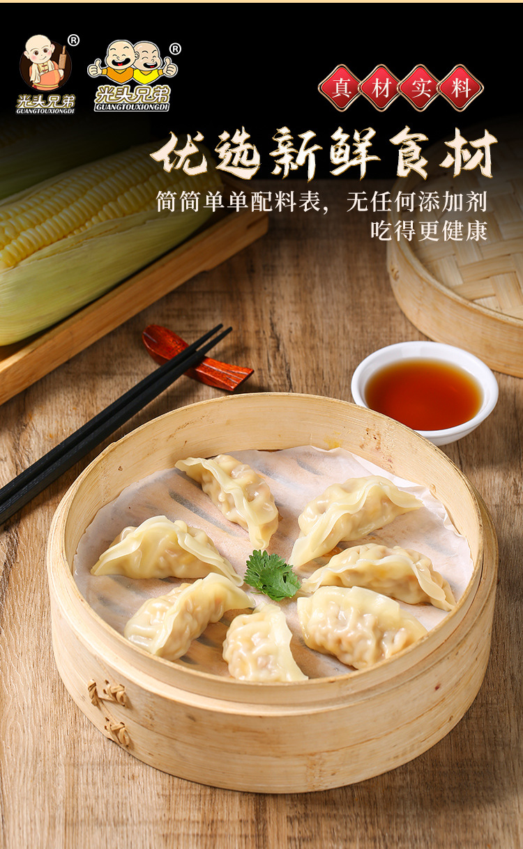 光头佬兄弟玉米鲜肉饺子粤式早茶速冻食品广式早茶速冻港式点心