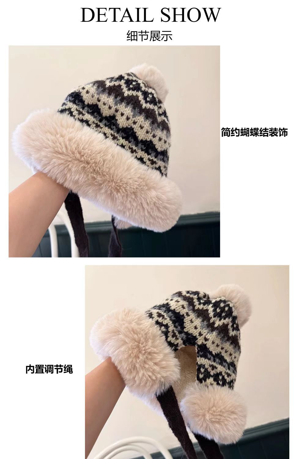 帽子女秋冬彩色针织毛绒渔夫帽保暖防风护耳套头盆帽潮东北蒙古帽