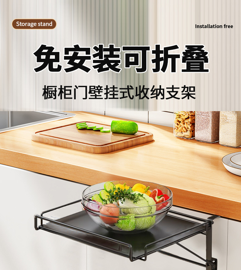可折叠悬挂收纳架家用柜门延展架收纳隔板辅助台厨房台面置物架