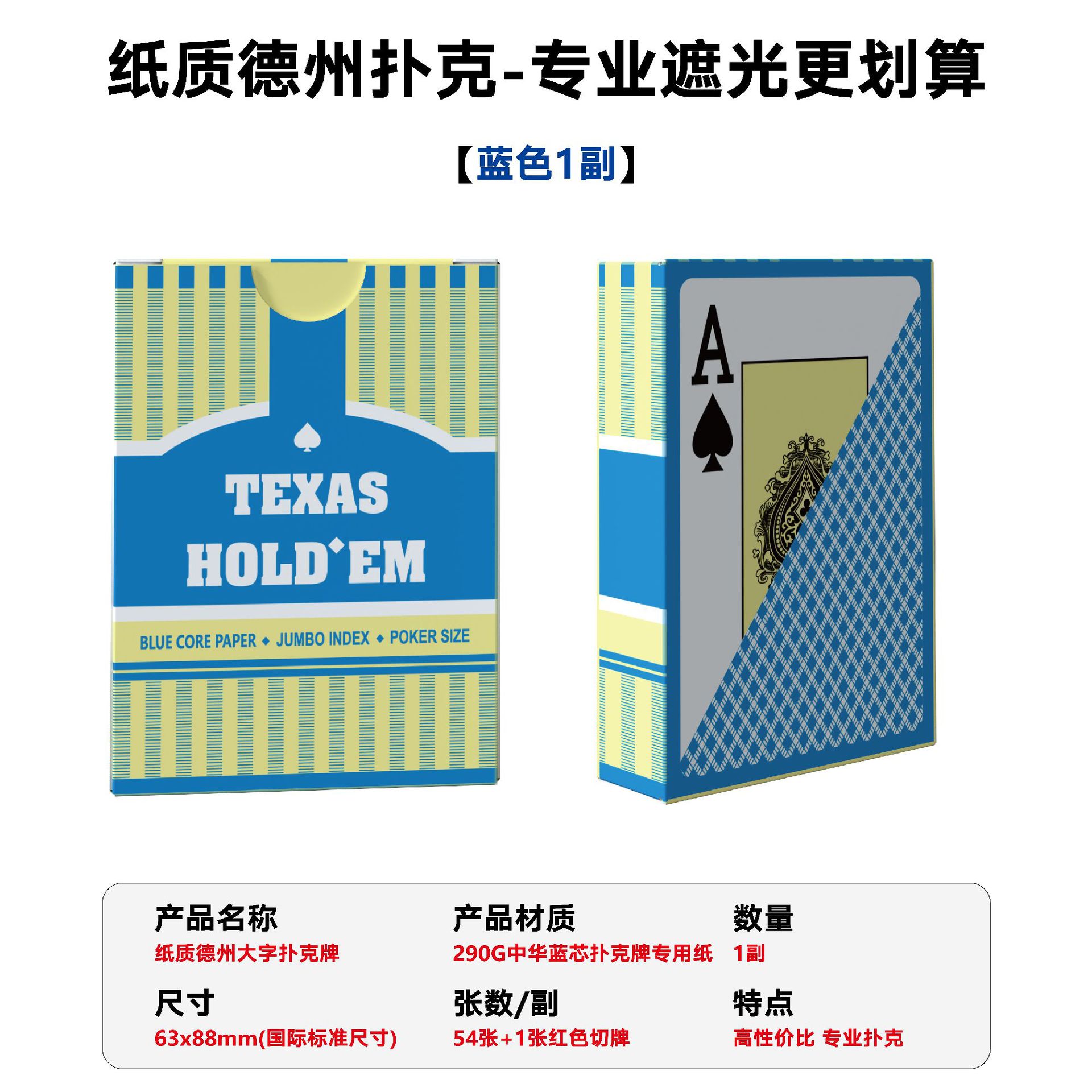 推荐理由:德州专用扑克牌,蓝芯布纹纸高遮光,大字适合老人适用,跨境畅销品