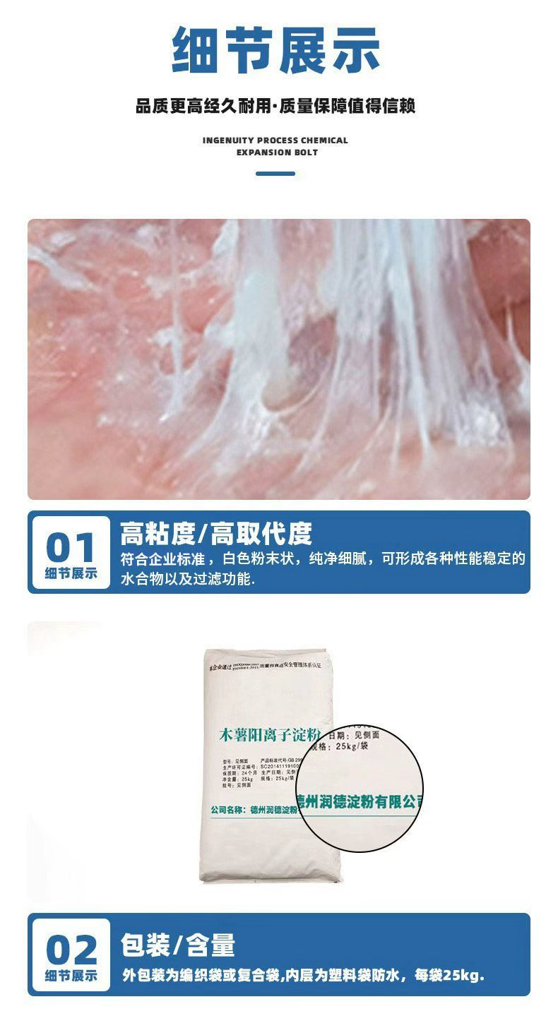 木薯阳离子淀粉工业淀粉高粘度助留助滤糊化温度低工业木薯淀粉