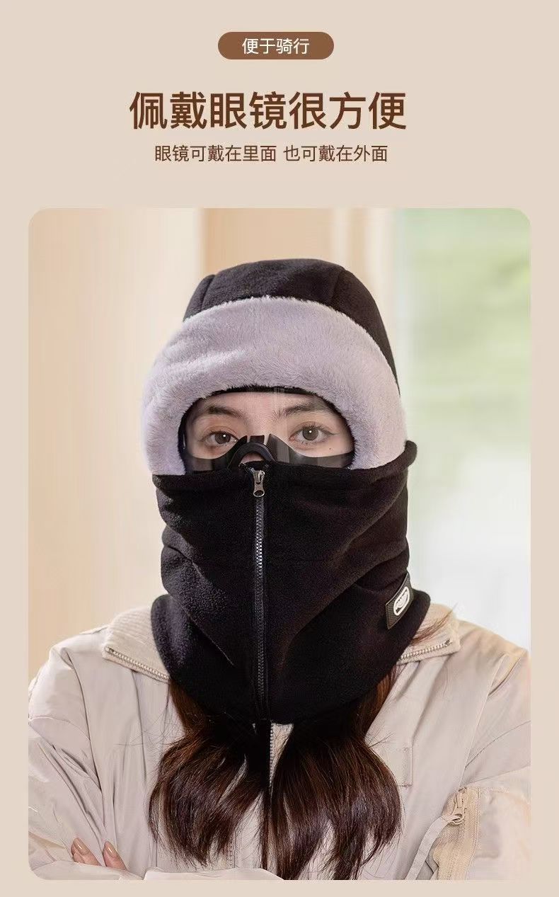 2025爆款拉链口罩一体防护保暖神器骑行帽男女款时尚全面保暖绒帽