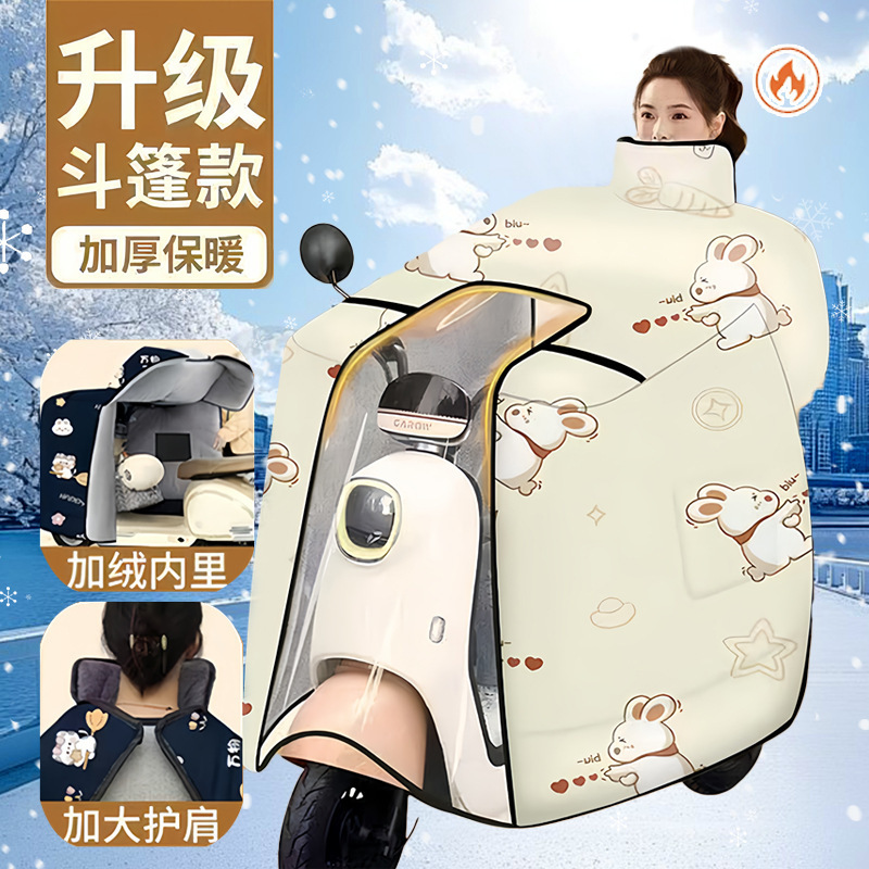 电动车挡风被冬季加绒加厚全包围斗篷护脖护肩保暖防寒防风挡风被