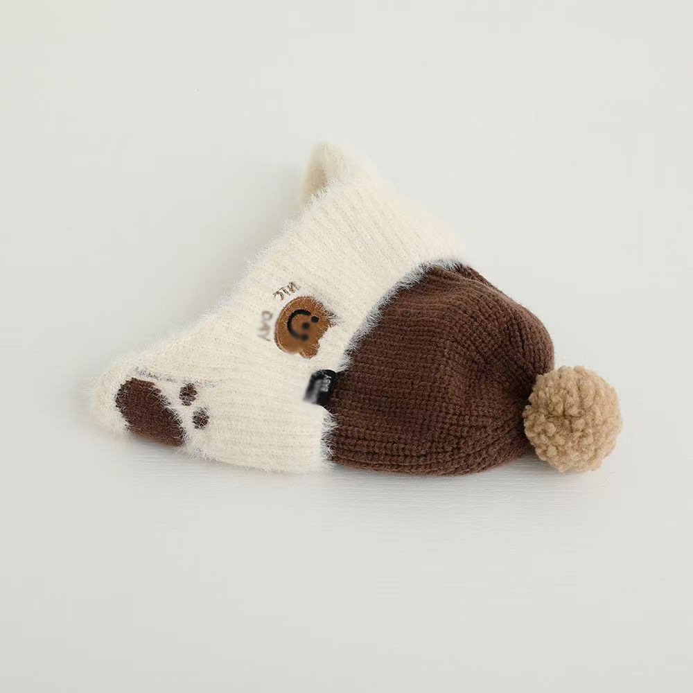 秋冬新款儿童保暖帽子潮酷针织小熊可爱宝宝套头帽护耳加厚毛线帽